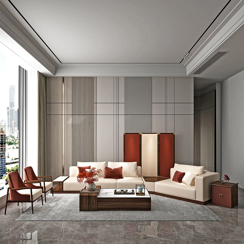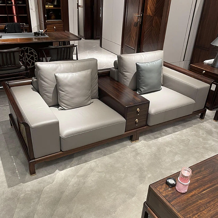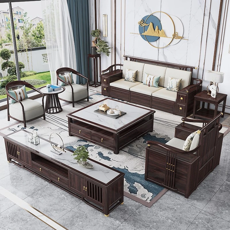 新中式スタイルのソファセット|現代的でシンプルなデザイン|高級感あふれる全無垢材使用|別荘やモデルルーム、販売所にも最適なリビング家具