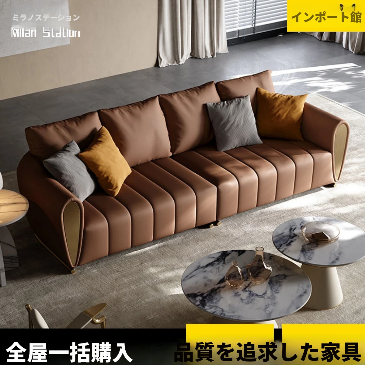 2023年新作!軽奢感溢れる本革ソファ - 高級な牛革使用、モダンなデザインで大空間に最適!イタリア直輸入の贅沢な座り心地を体験してください。