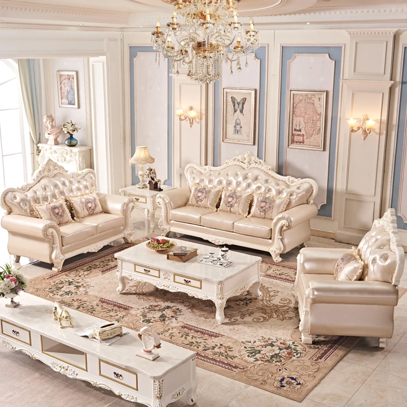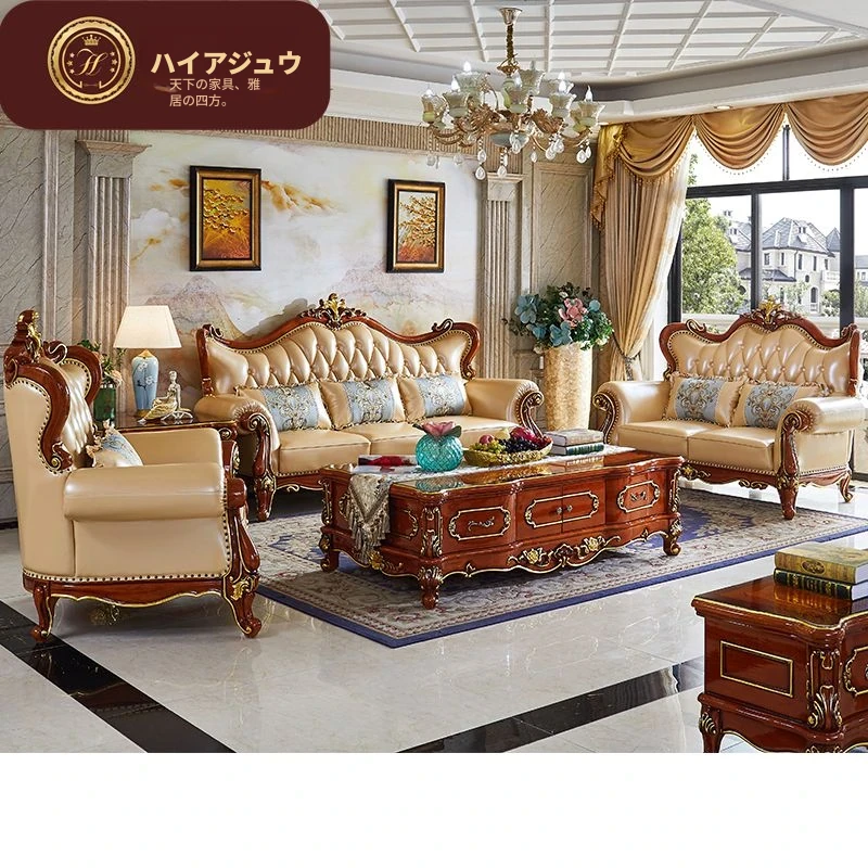 2024年版 高端欧式真皮ソファ123組 合 豪華な本革と無垢材使用 ヴィラ風 宮廷スタイルのリビング家具