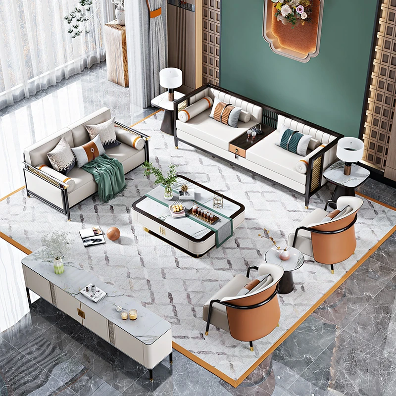 高級感溢れるイタリアンレザーソファセット - 豪華なヴィラや広々としたラグジュアリー空間にぴったりな後現代的なジバンシィソファで、あなたのリビングを特別な空間に演出します!