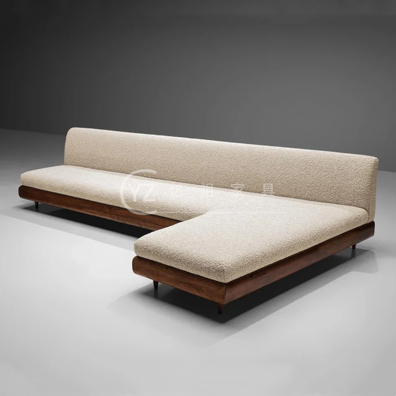 新中式スタイルのシンプルで洗練された別荘用リビングルーム向け、豪華なL字型ソファ。高品質な天然木製、ふんわりとしたラムフリース素材で、居心地よく贅沢な空間を演出します。