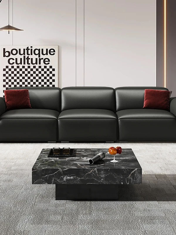 本革製ソファ シンプルなブラックレザー イタリアンミニマリズムの極み 上質な本牛革を使用したリビングルーム向け 大小兼用 ソファ