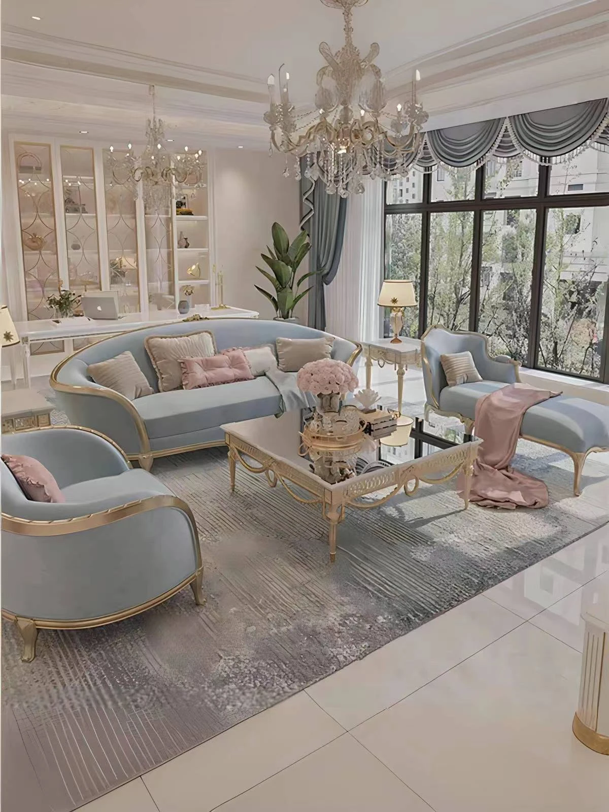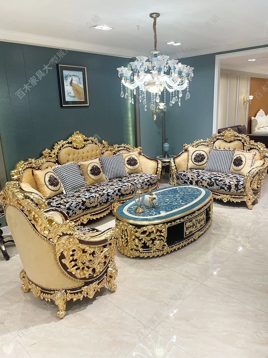 イタリアンラグジュアリー別荘ソファー|高級宮廷風コンビネーションリビングソファ|欧州スタイルの無垢材ゴールドフィニッシュ装飾布製ソファーで、豪華で快適な空間を演出します!