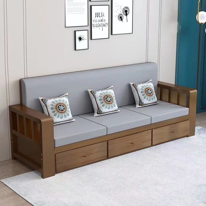 香港・マカオ送料無料!モダンシンプルな実木製ソファ - 小型住居に最適な欧風デザイン。バルコニーや寝室、リビングにぴったりの3人掛け・4人掛けソファで、快適な空間を演出します!