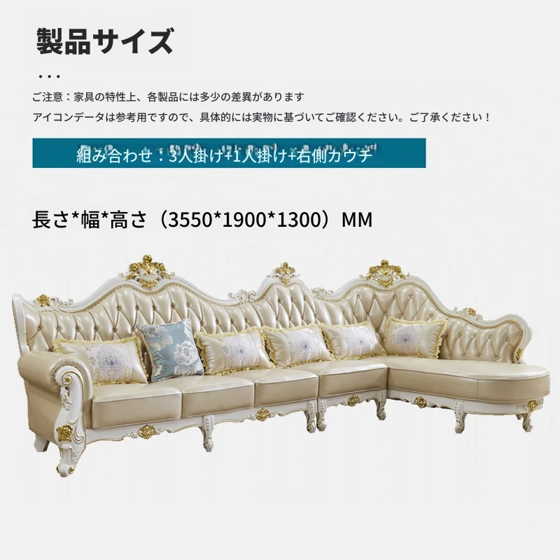 贅沢なヨーロッパスタイルの本革コーナーソファ!高級トップグレイン牛革使用、洗練されたデザインで小型住宅にもぴったり。美しい木彫りのフレームが魅力のリビング家具。あなたの空間を特別に演出します!