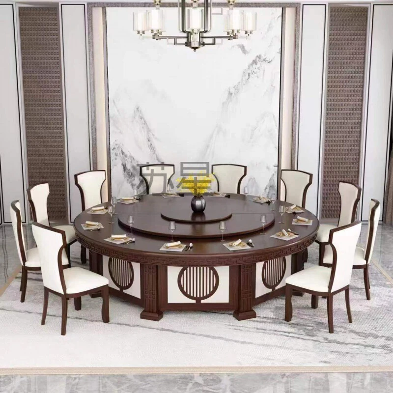Sxホテルの大円テーブル 新中式電動ダイニングテーブル レストラン個室向け 中華スタイルの回転火鍋テーブル 擬似石材仕上げのダイニングテーブルで、贅沢な食事体験を演出します!