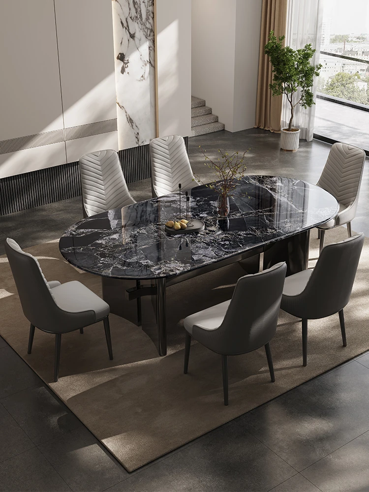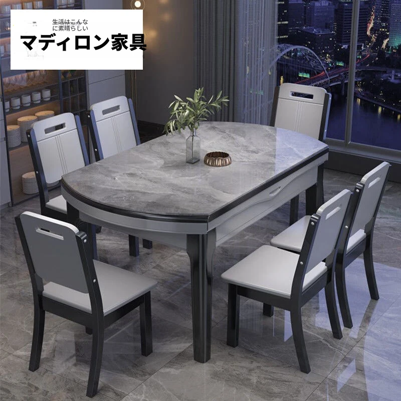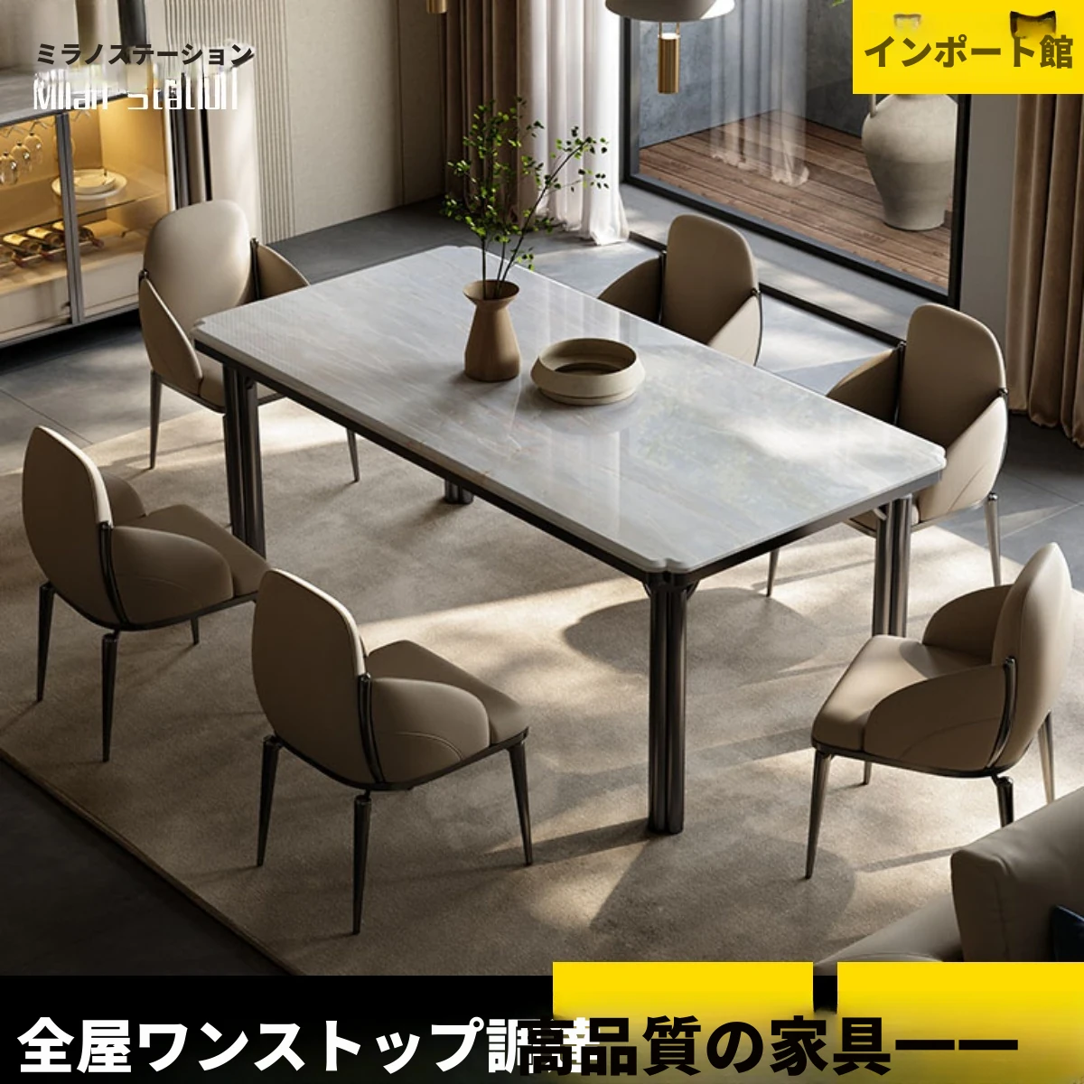 洗練されたミニマルデザインのダイニングテーブル&チェアセット|高級感漂う大理石仕様|おしゃれで実用的な家庭用食卓|モダンな空間を演出します!