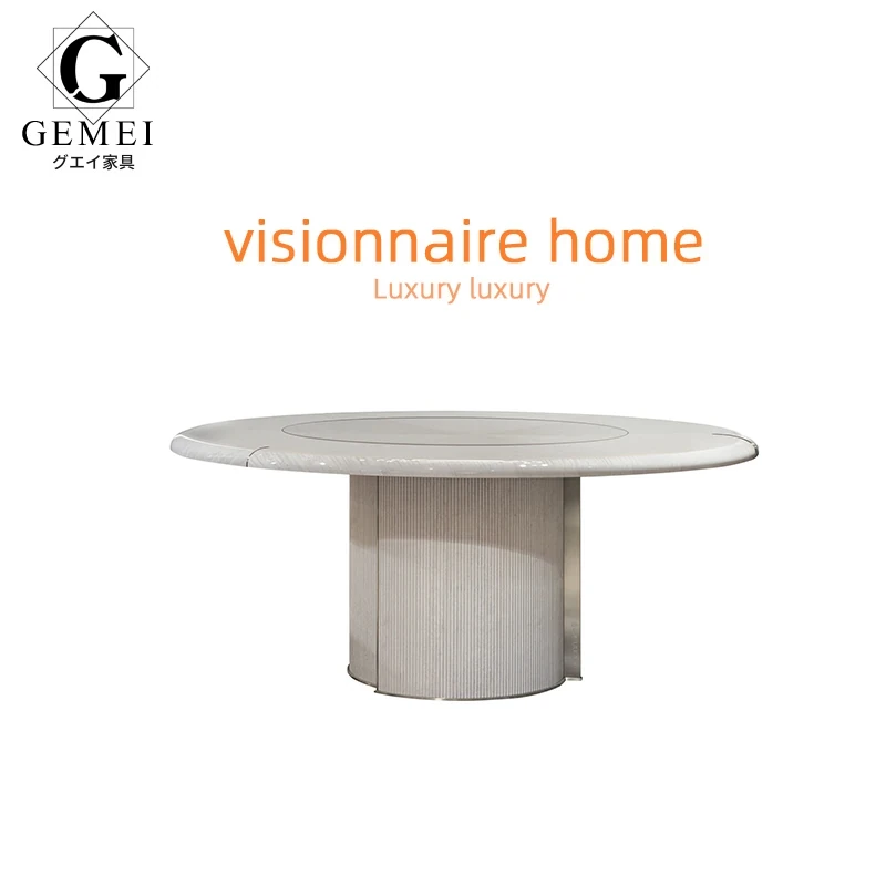 ラグジュアリー天然大理石円形ダイニングテーブル - ヴィラ向けの洗練されたデザイン、回転式で使いやすく、上質な空間を演出します。