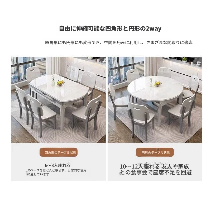 現代的なミニマリストデザイン!伸縮可能な微晶石製の円形ダイニングテーブル、エレガントな楕円形に変形。多機能で家庭にぴったり、食事をより特別な時間に演出します!