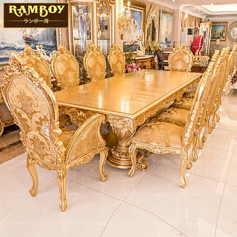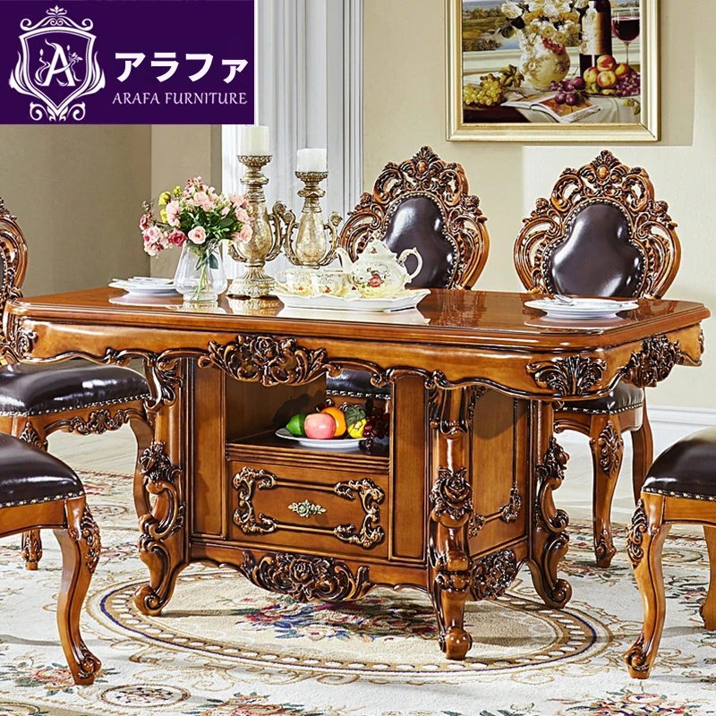 ヨーロピアンラグジュアリー ダイニングテーブル&チェアセット フランス風の無垢材彫刻 宮廷スタイル 長方形ダイニングテーブル 大型住宅に最適 食事を優雅に演出する一品!