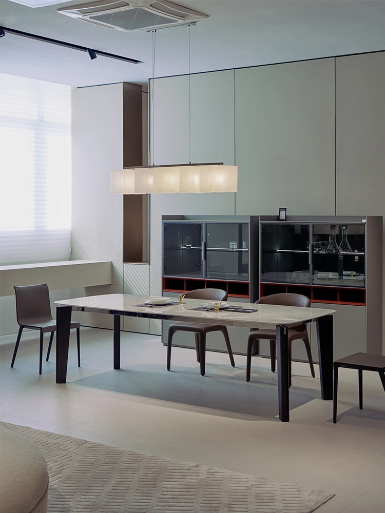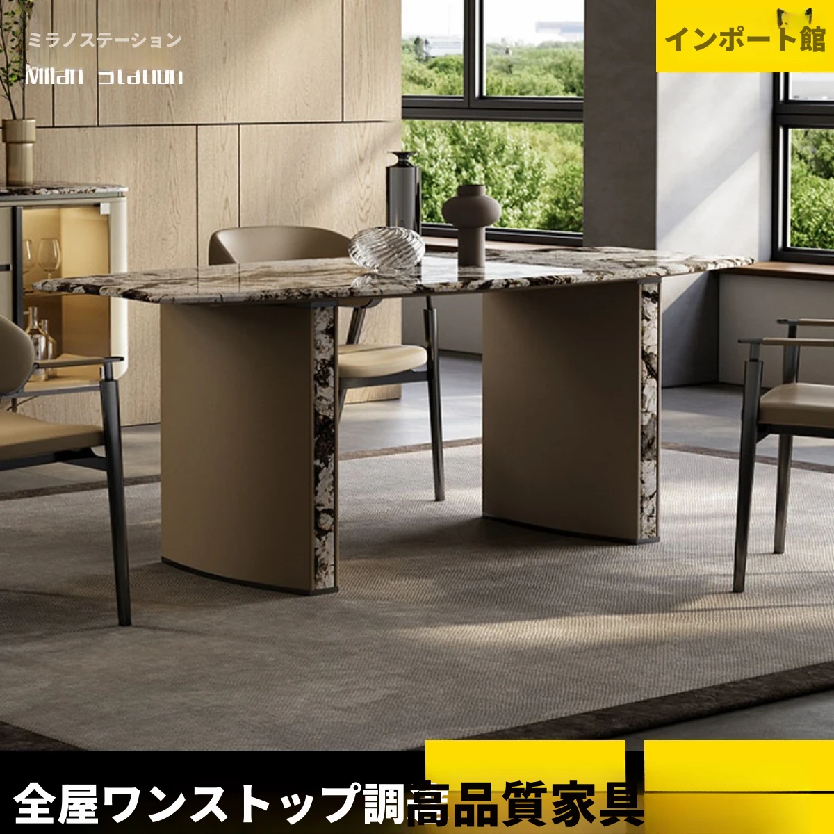 現代的でシンプルなデザインのラグジュアリーな長方形ダイニングテーブルと椅子のセット、上質な石材を使用したホーム用食卓。贅沢な食事体験をあなたの家に!