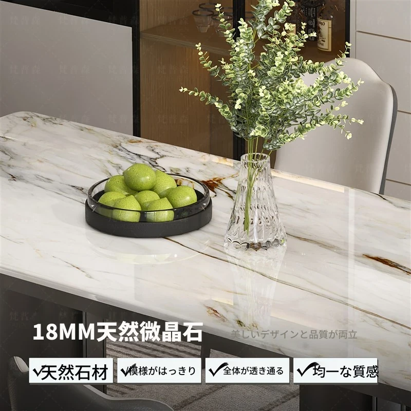 2024年新作!高級感あふれる天然大理石長方形ダイニングテーブル&チェアセット - 微晶石と超晶石の美しいコラボレーション。おしゃれで洗練された空間を演出し、特別なひとときをお楽しみください。
