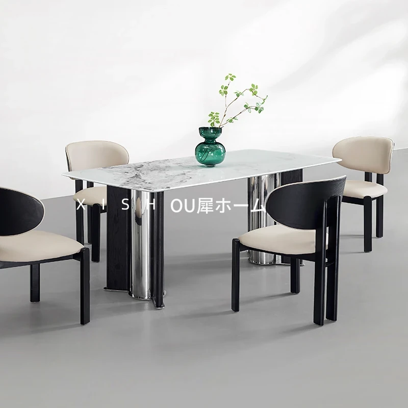 侘寂風のシンプルモダンな長方形イタリアン大理石ダイニングテーブル&チェアセット - デザイナーの洗練された感覚で、家庭に上質な空間を演出。