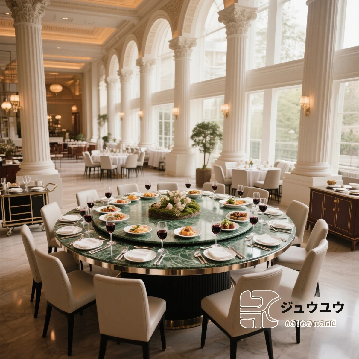豪華ホテルの大理石製特大5メートル円卓!3.6メートル20人用電動ダイニングテーブル、2.8メートルの岩板テーブル。洗練された空間を演出し、大切な集まりを特別なものに!