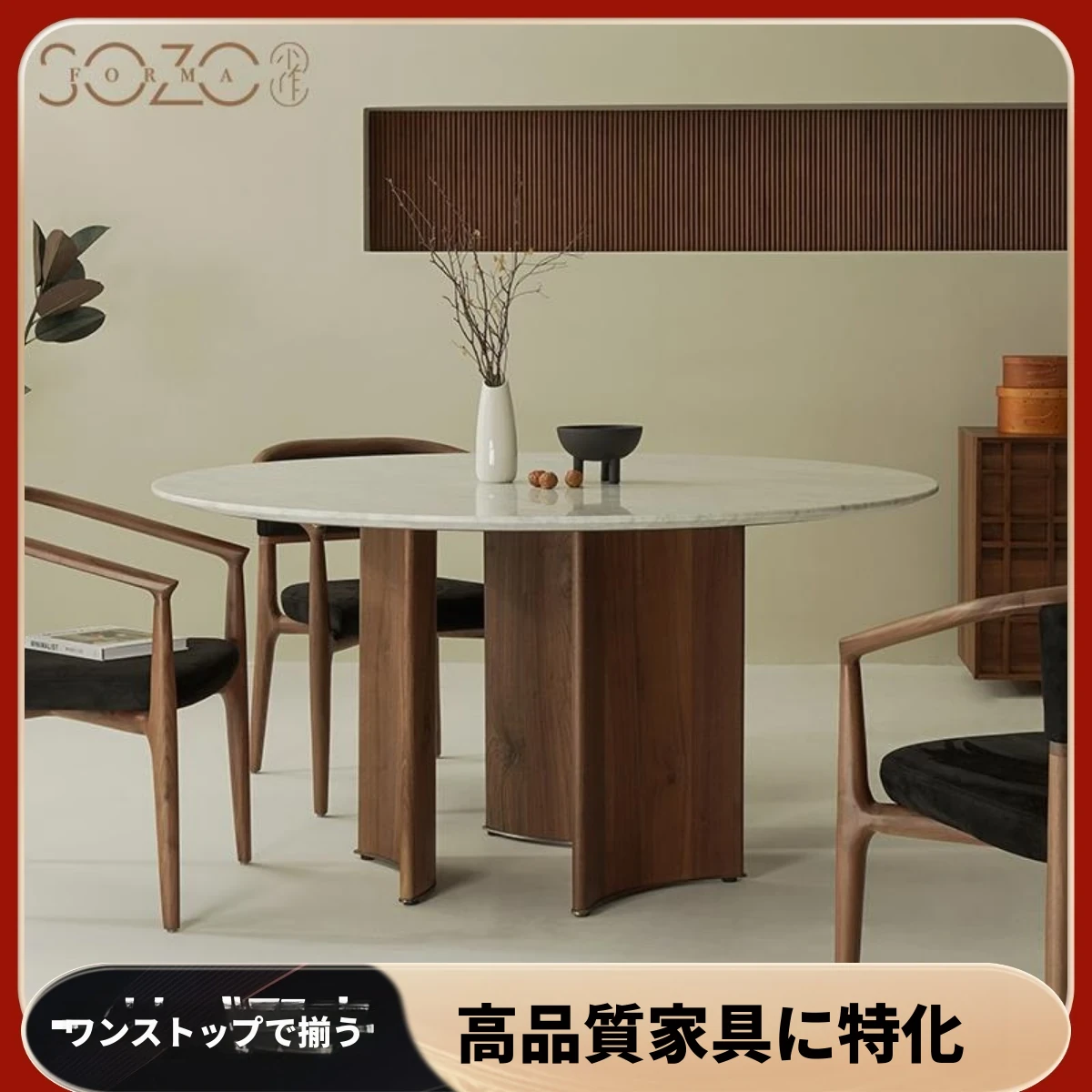 北米産ブラックウォルナットと大理石を使用したラウンドダイニングテーブル - 大型住宅向け、サイズ選べる1.35m / 1.5m / 1.8m!高級感溢れるデザインで、家族や友人との特別なひとときを演出します。