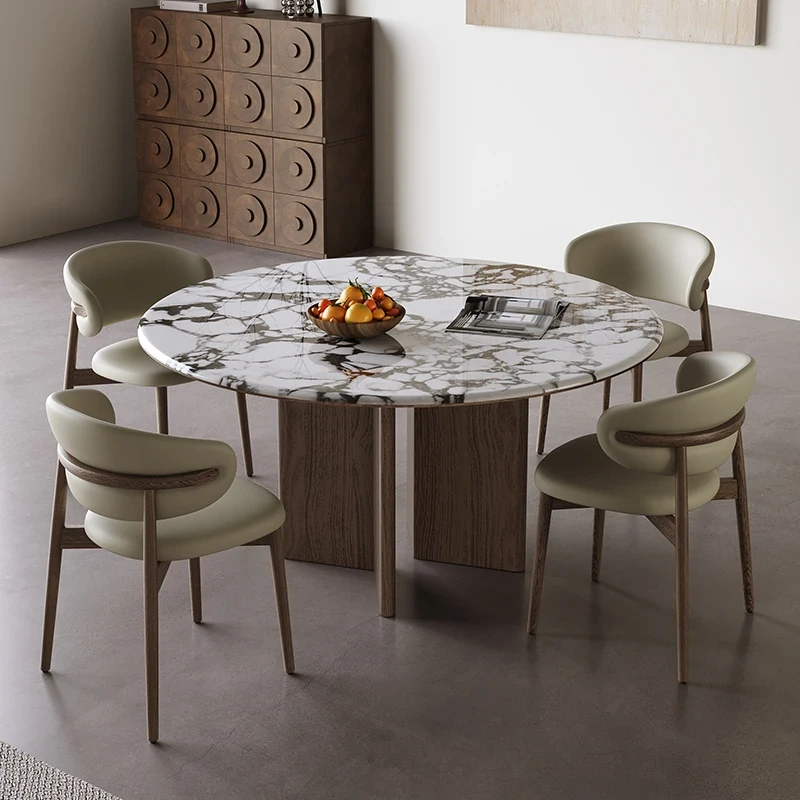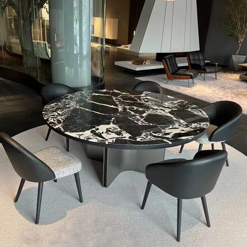 フレンチ・ブルガリ風ラウンド大理石ダイニングテーブル|小型住宅にぴったりな軽やかでラグジュアリーな現代的デザイン|高級感溢れるシンプルな食卓で、特別なひとときを演出します。