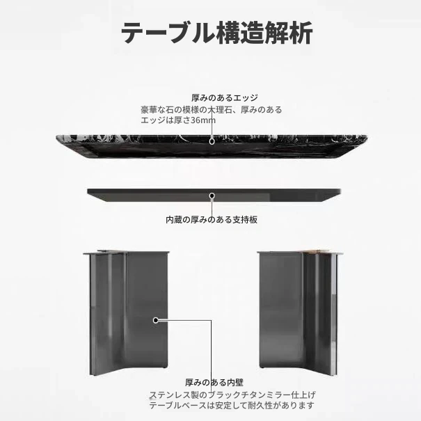 広巢 イタリアンミニマリズム 大理石ダイニングテーブル 現代的なラグジュアリー 長方形 ステンレススチール デザイナーズ 家庭用 食卓セット【洗練されたデザインでおしゃれな食卓を演出】