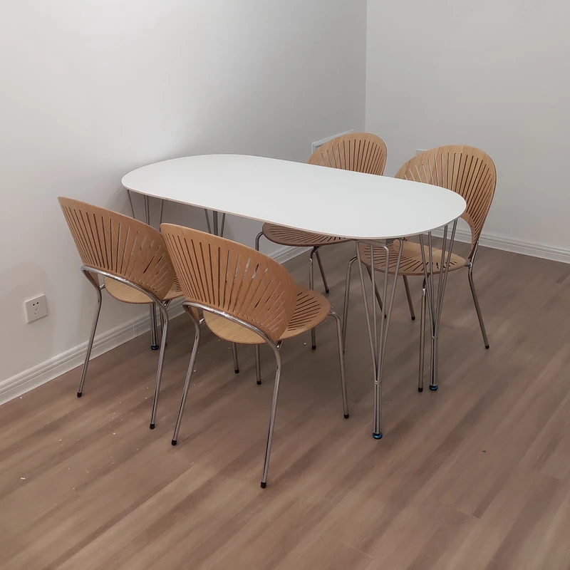 北欧風ミニマリストデザインのオーバル大理石ダイニングテーブル|純白色で洗練された雰囲気|小型家族や会議に最適|コンパクトなスペースでもスタイリッシュに!