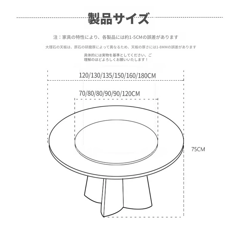 高級感あふれるモダンデザインのラウンドダイニングテーブル!軽やかなラグジュアリー、回転式大理石テーブルで家族や友人との特別なひとときを演出。シンプルで洗練されたスタイルで、どんなインテリアにもマッチします。