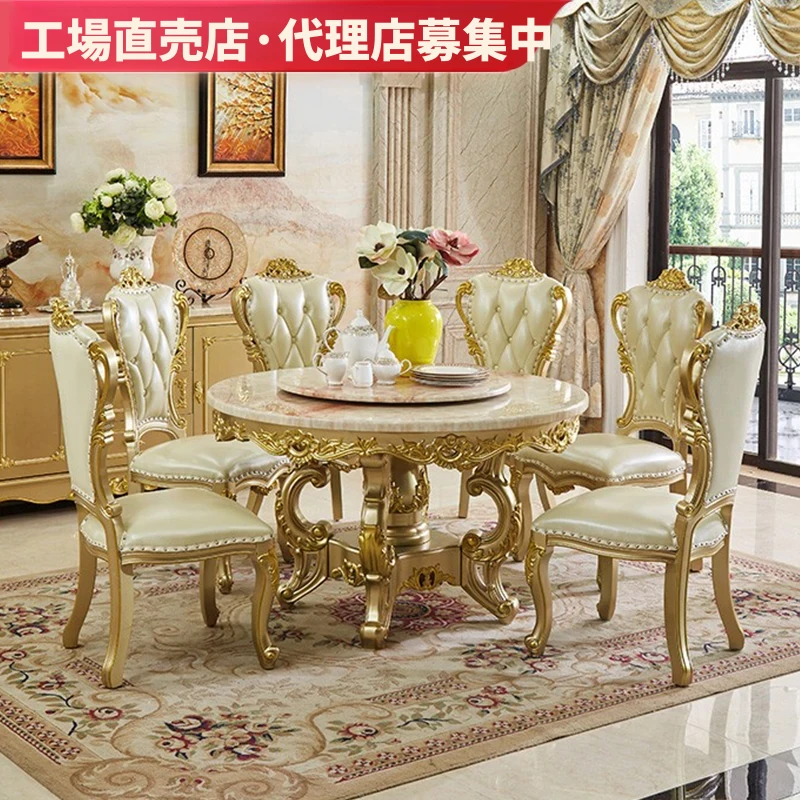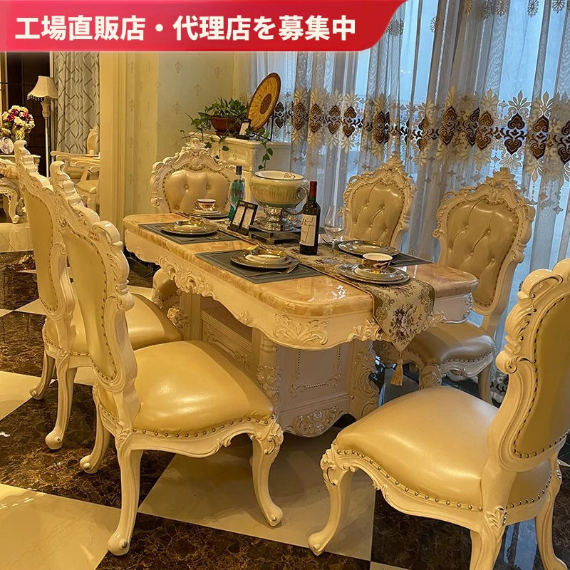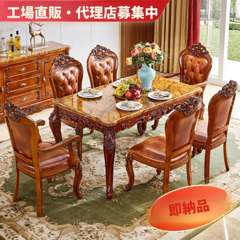 高級ヨーロピアンスタイルの実木ダイニングテーブル&チェアセット - フランス宮廷風の贅沢な長テーブル、大理石製のエレガントなバーテーブル、プレミアムレザーの椅子で、特別なひとときを演出します。