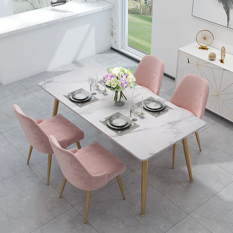 北欧スタイルの軽奢大理石ダイニングテーブル&チェアセット - 小スペースに最適なモダンなイタリアンデザインの長方形テーブル、鉄製の頑丈な構造で、家庭にエレガントな雰囲気をプラス!