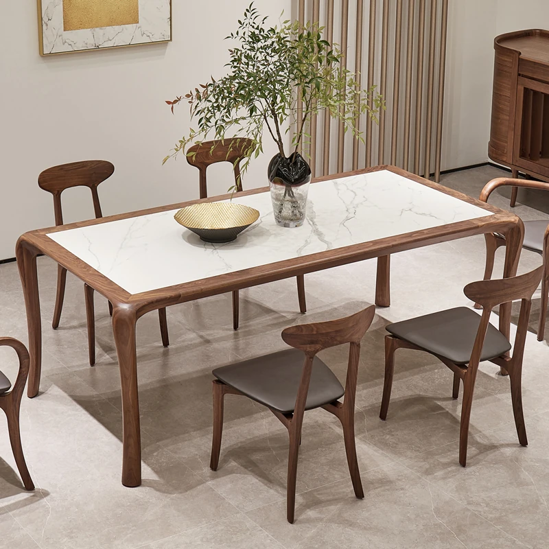 北米産ブラックウォールナットのイタリアンラグジュアリー実木大理石H型テーブル - シンプルで洗練された長方形の天然木製ダイニングテーブル。あなたの空間に高級感をプラス!