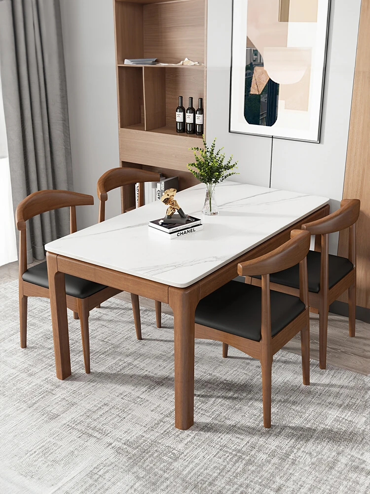 モダンミニマリストの岩板ダイニングテーブル - 家庭用小型デザイン、天然木製椅子付き、北欧スタイルの大理石長方形テーブルで、食事の時間を特別に演出!
