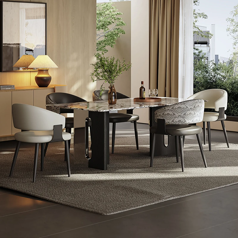 イタリアンラグジュアリーデザイン 新作大理石ダイニングテーブル フレンチヴィンテージスタイルの岩板ダイニングテーブル&チェアセット ヴィラにぴったりの洗練された空間を演出!
