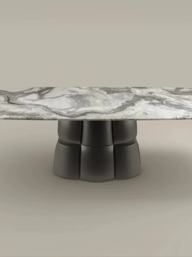イタリアンラグジュアリー 輸入天然石製ダイニングテーブル モダン高級別荘向け プラチナダイヤモンド長方形テーブルで、上質な食事体験をお楽しみください!
