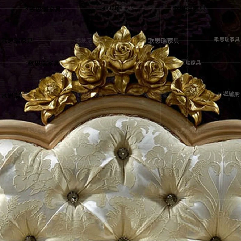 欧風の高級木製彫刻付きデイベッド|アメリカンスタイルの布製ラウンジチェア|寝室にぴったりのエレガントなソファ|贅沢な貴婦人のための特別な一品!