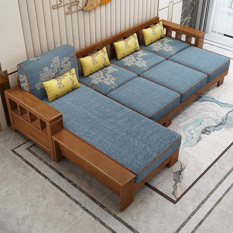 Modern Chinese Style Solid Wood Sofa Set - Space-Saving, Economical 3-Seater Bench, Perfect for Small Living Rooms, Versatile for Both Winter and Summer Use