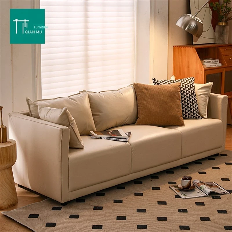 Italian Genuine Leather Sofa - Top Grain Cowhide Modern Minimalist Light Luxury Design for Spacious Living Rooms - New Cream-Colored Deep Seating Sofa
