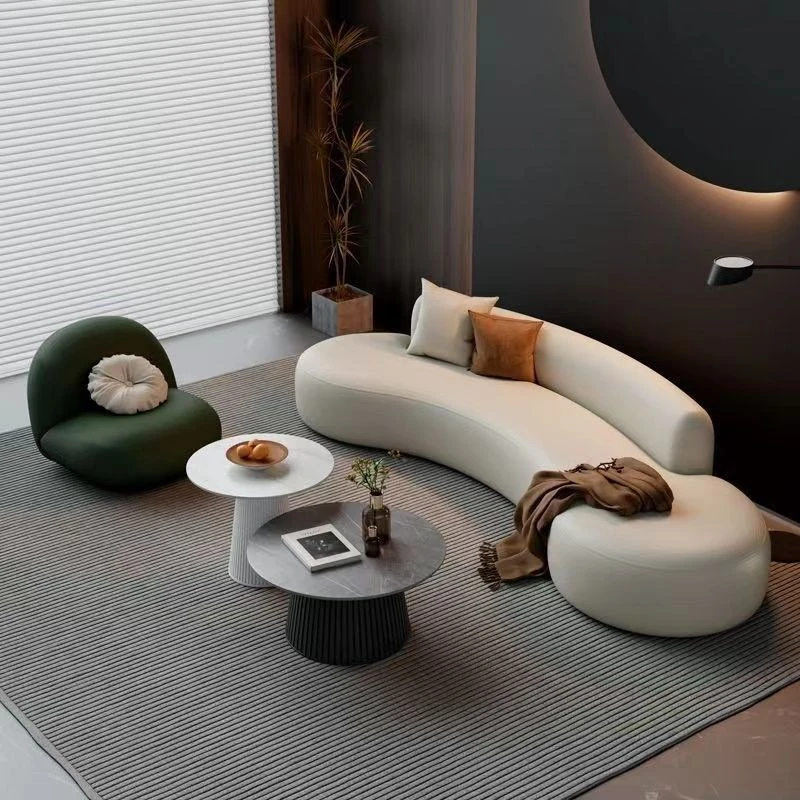Italian Luxury Genuine Leather Curved Sofa Set - Modern Minimalist Hermes Fabric Asymmetrical Sofa for Hotel Furniture