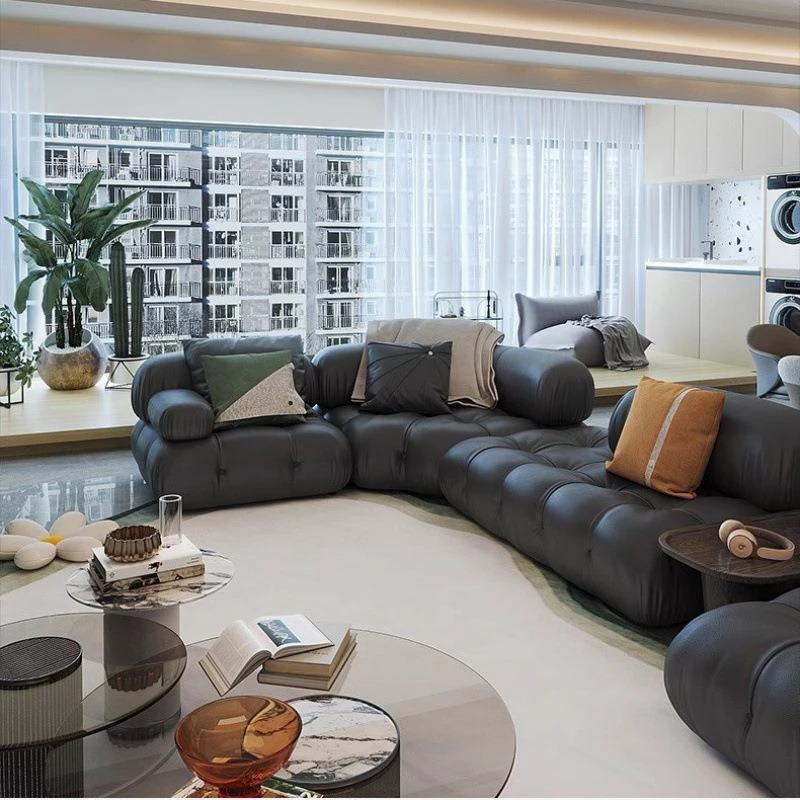 Elegant Italian Genuine Leather Sofa Set for Living Room – High-End Villa and Luxury Apartment, Modern Design Inspired by Givenchy