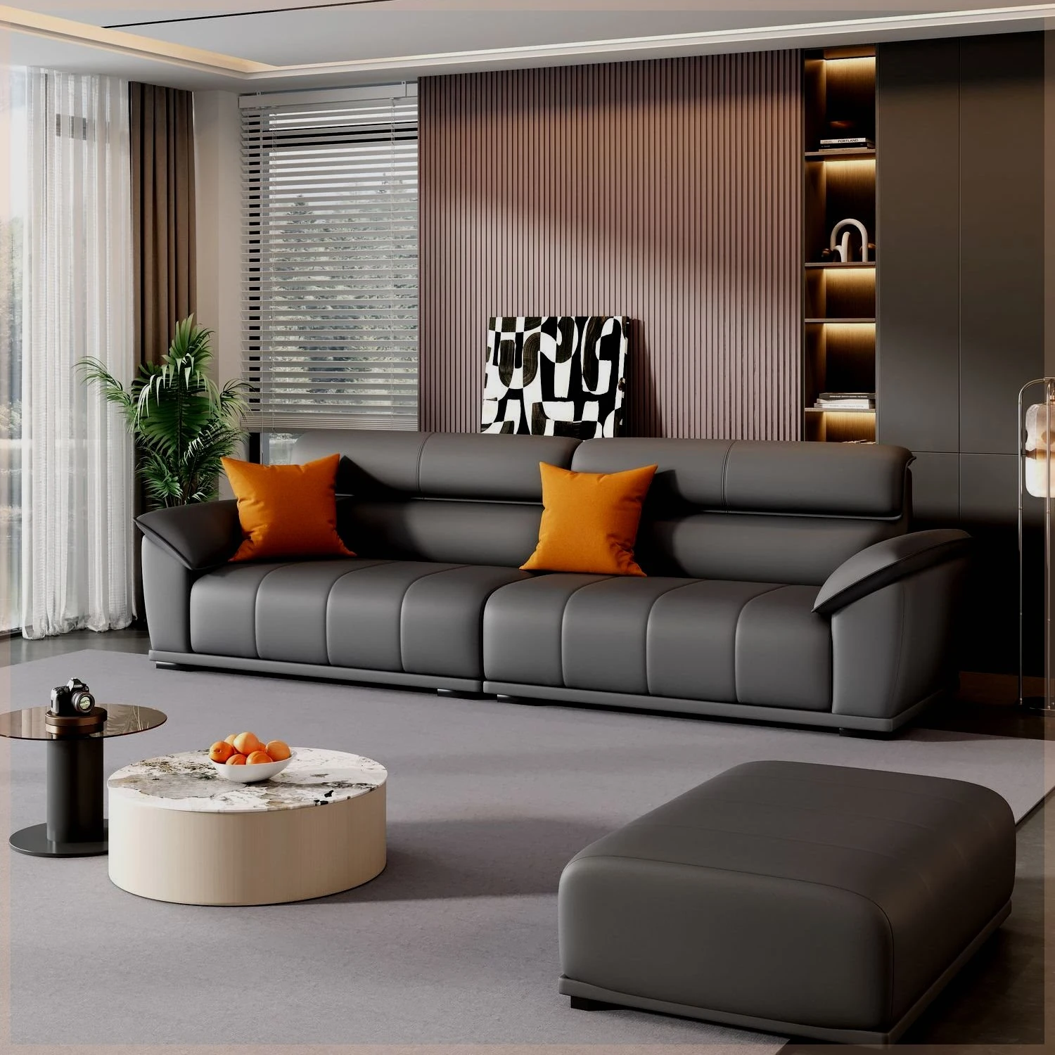 Modern Luxury Genuine Leather Sofa - Premium Top-Grain Italian Leather, 2023 New Model for Spacious Living Rooms, Imported Quality