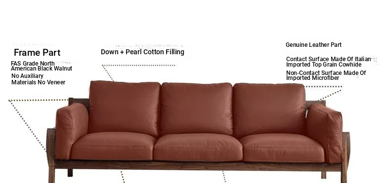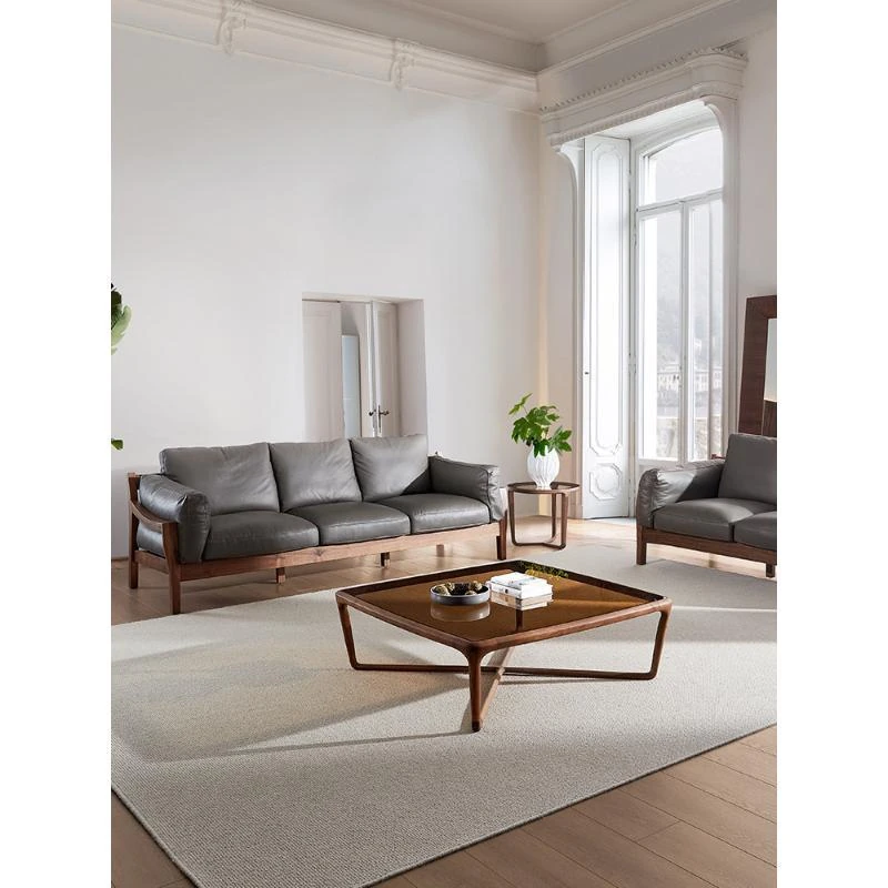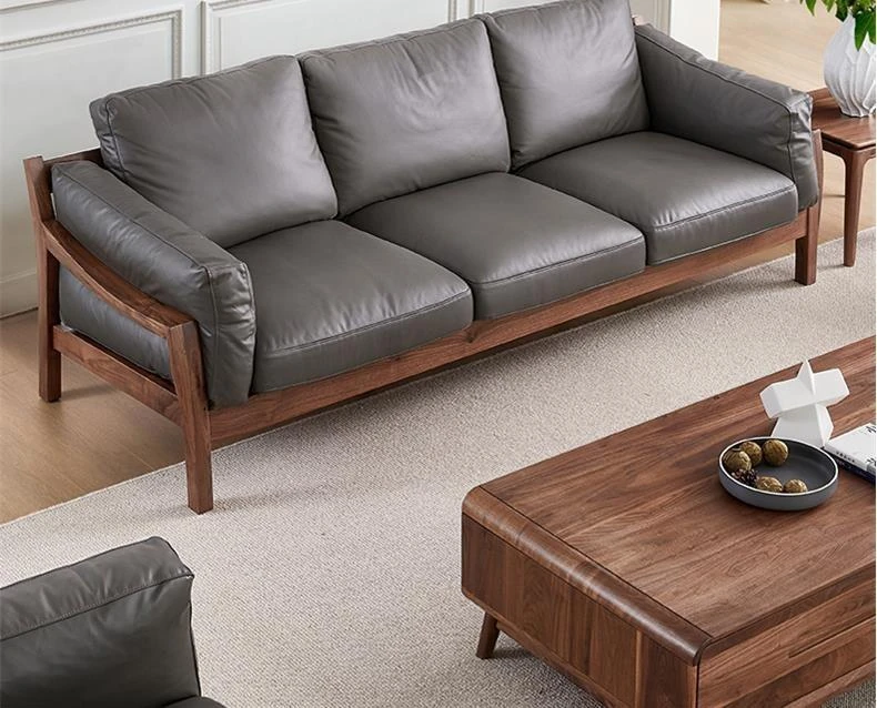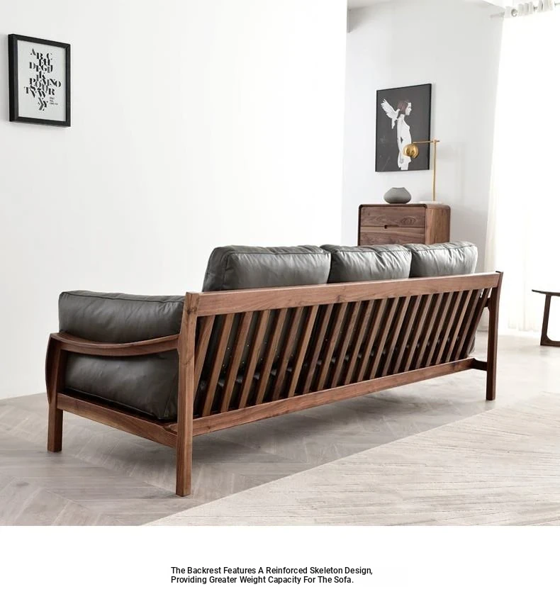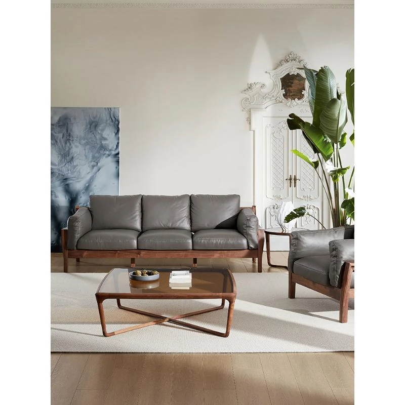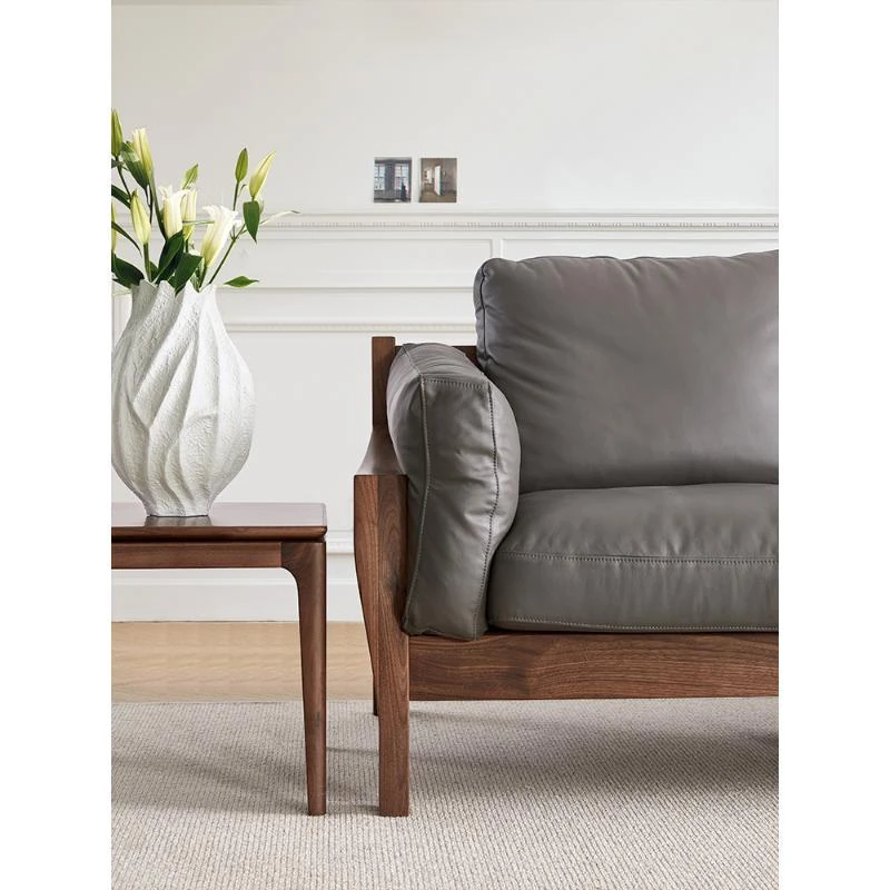 All-Wood Sofa in North American Black Walnut - Italian Minimalist Luxury Designer Leather Living Room Couch for Home Use, Modular Design
