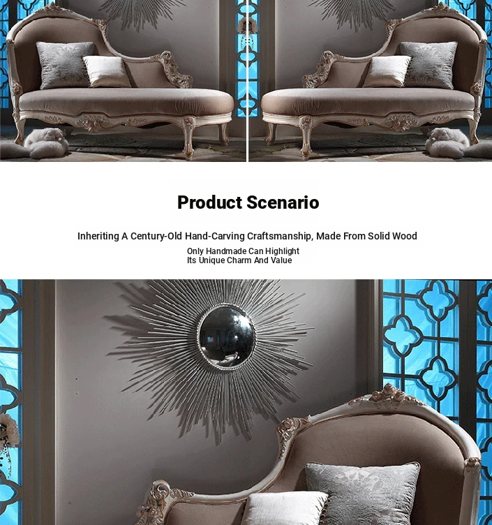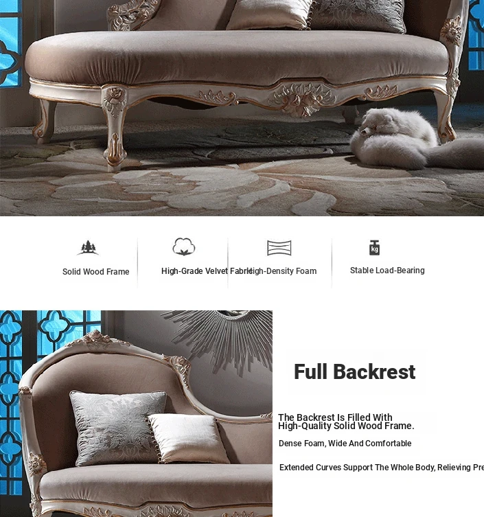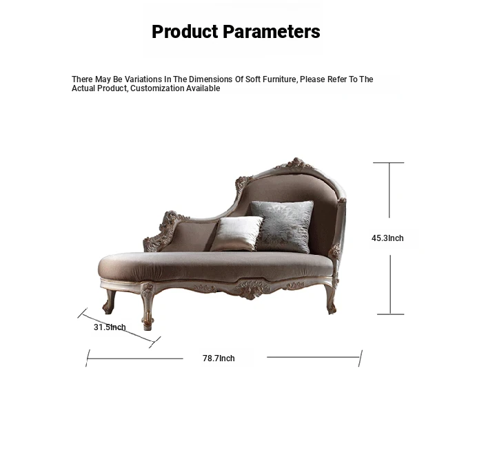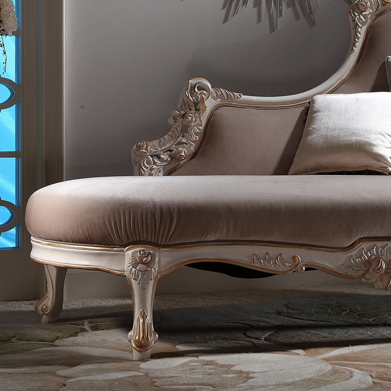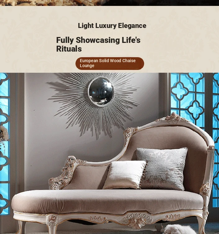 American Solid Wood Chaise Lounge - French Style Reclining Sofa for Balcony and Bedroom, Elegant Ottoman Chair, Perfect for Relaxation and Leisure