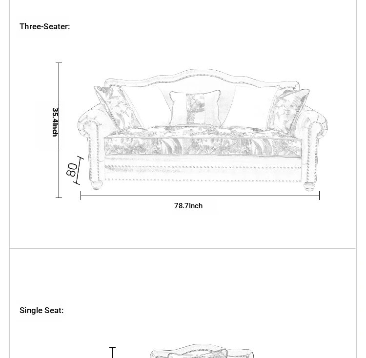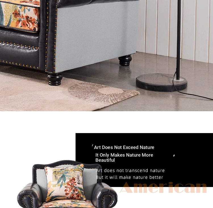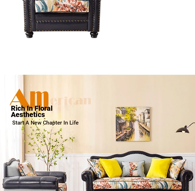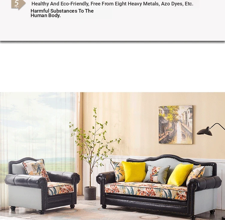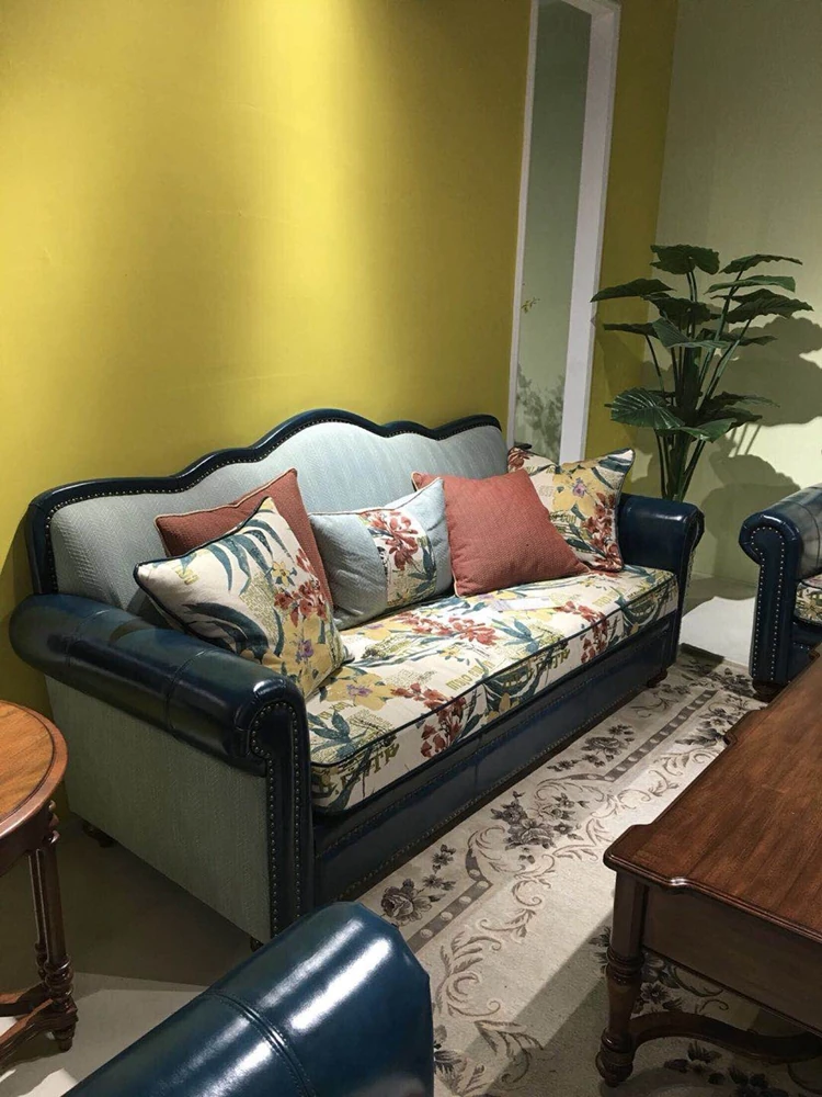 American Style Fabric Sofa - Rustic Luxury Three-Seat & Two-Seat Mediterranean Complete Set, Trendy Leather & Fabric Couch for Small Spaces
