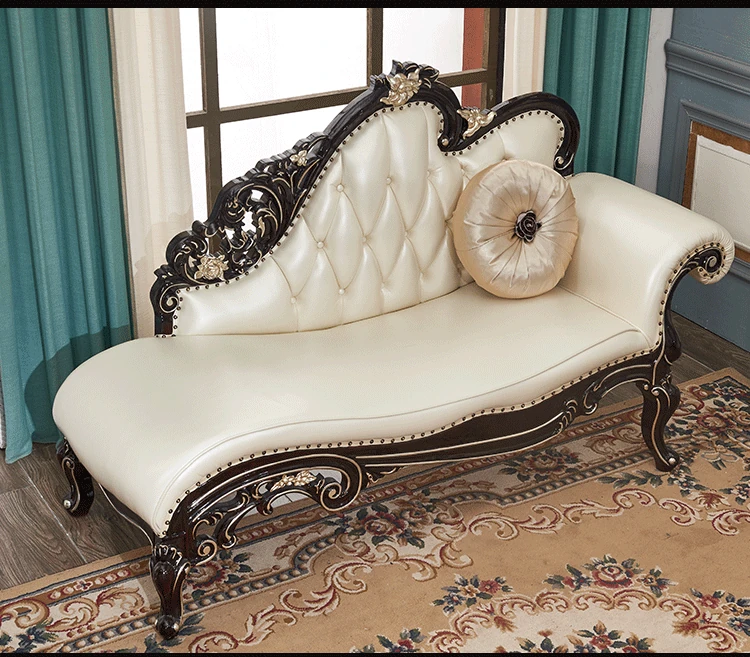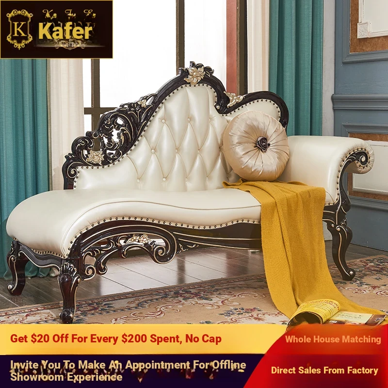 American Style Leather Chaise Lounge - Elegant Single Sofa for Bedroom and Balcony, Luxurious European Design for Ultimate Comfort and Relaxation. Perfect for Creating a Chic and Cozy Corner!