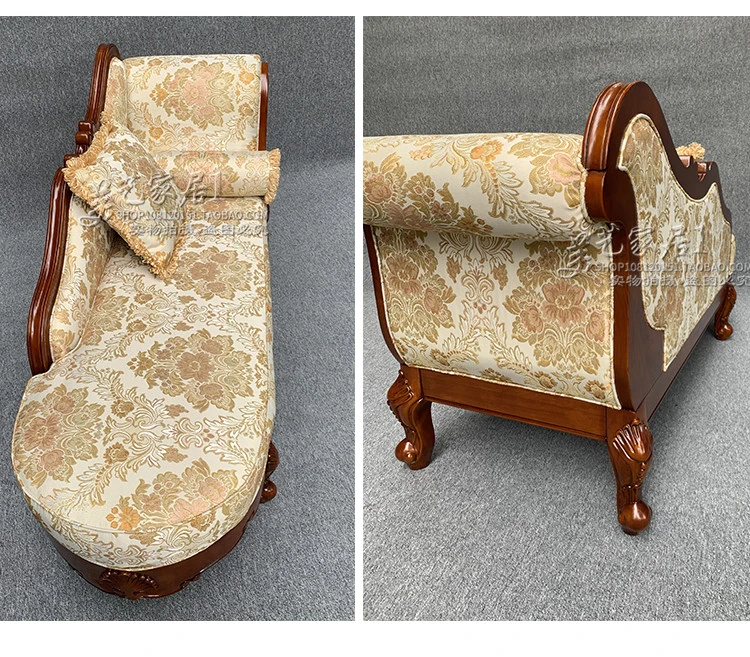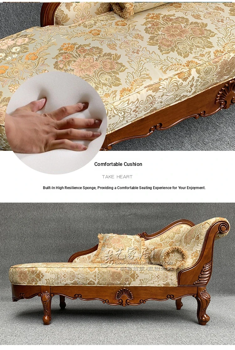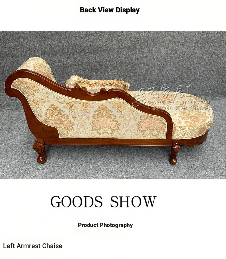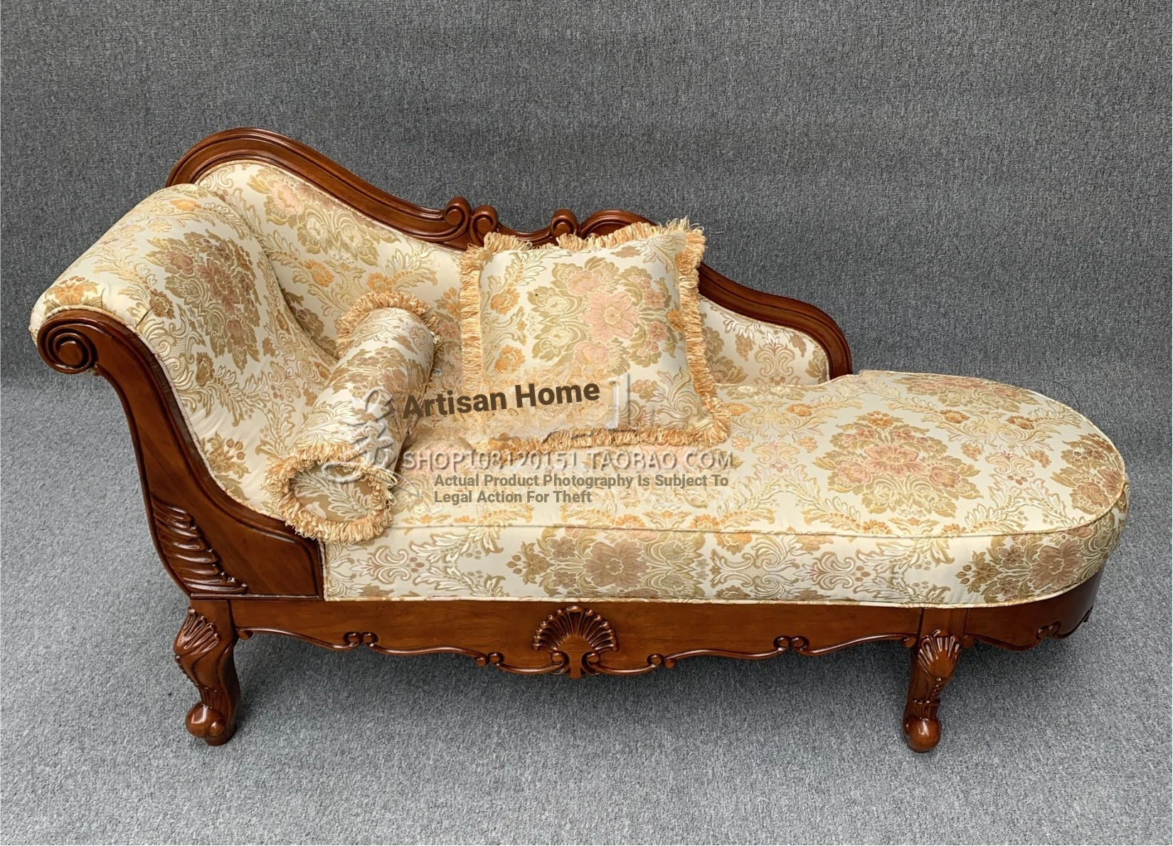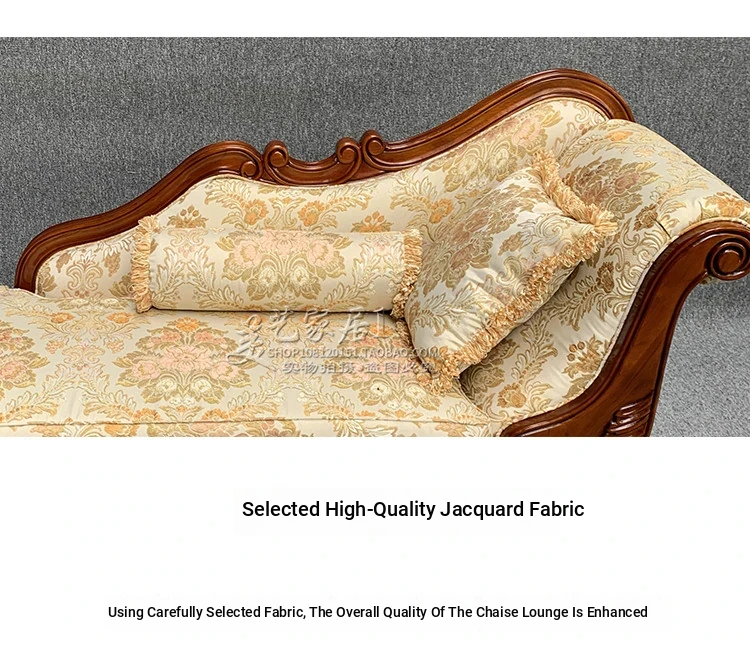 American Style Solid Wood Chaise Lounge Chair - Elegant Fabric Daybed Sofa for Living Room & Bedroom, Perfect for Relaxation & Leisure, European Design with Modern Comfort