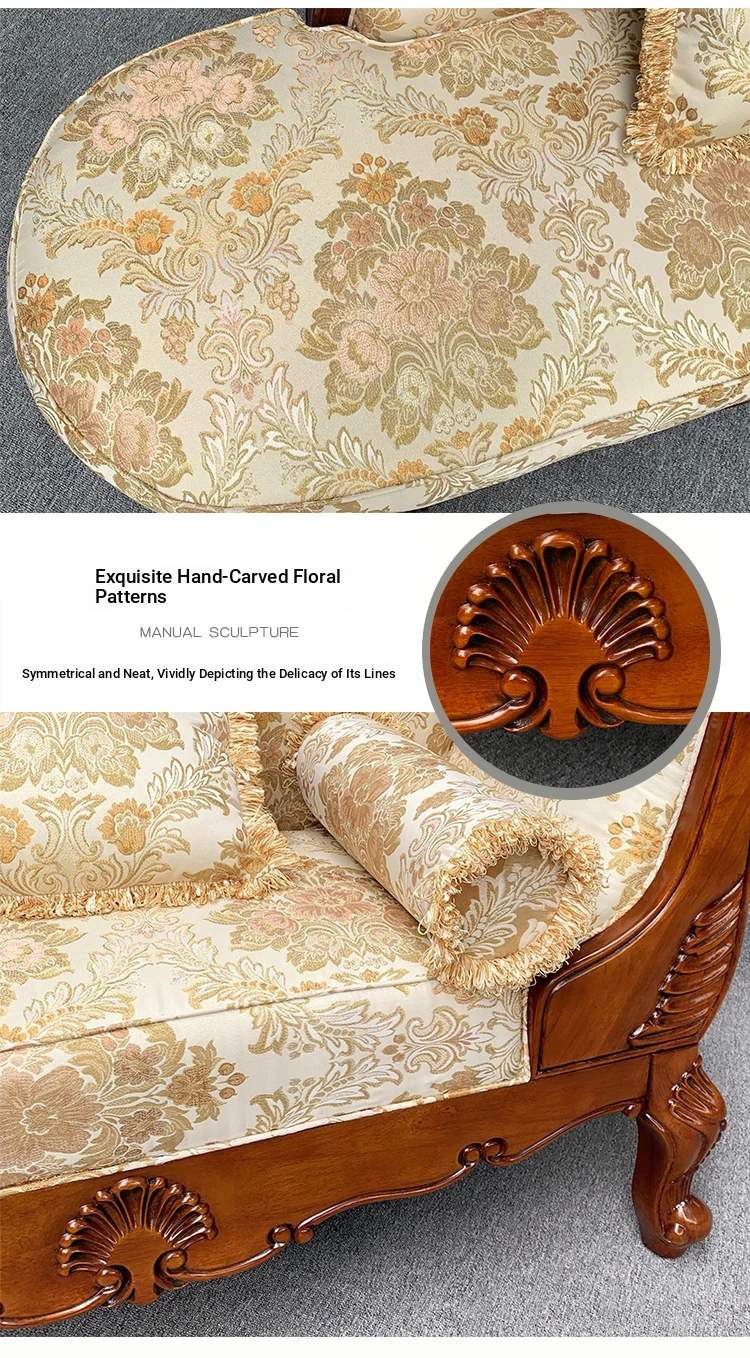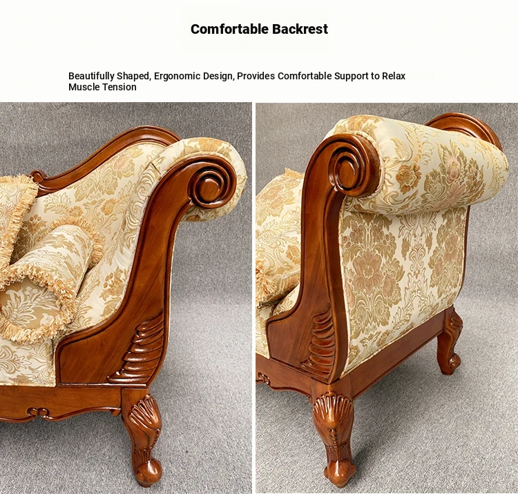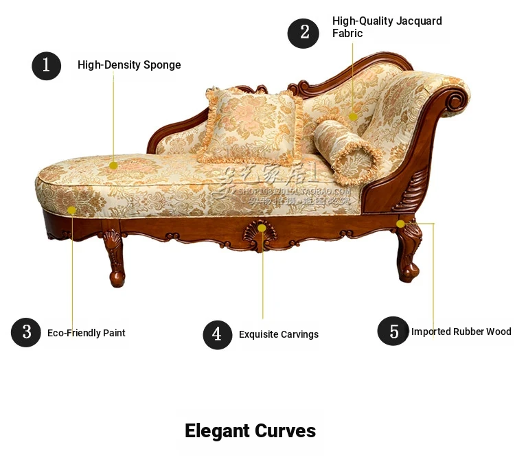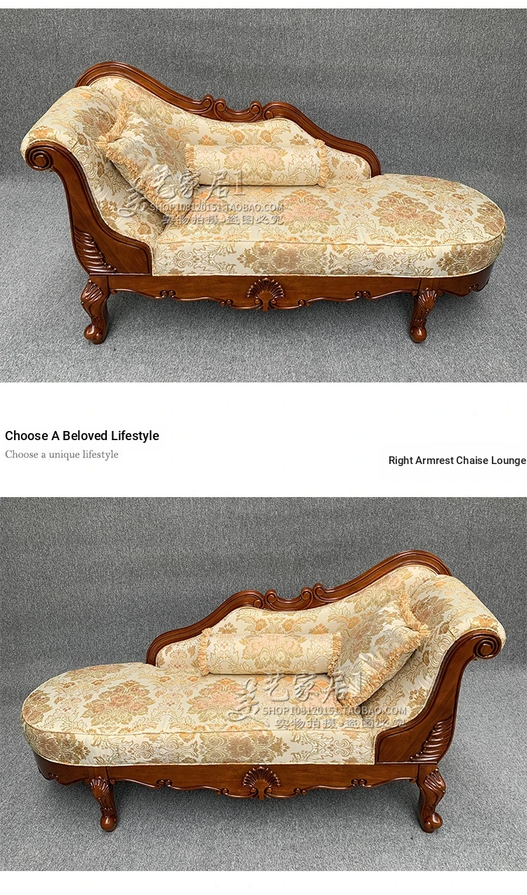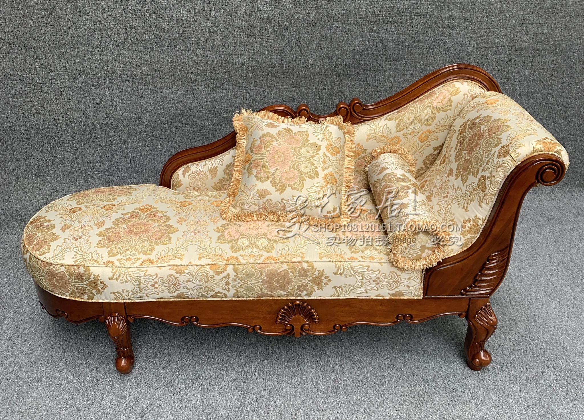 American Style Solid Wood Chaise Lounge Chair - Elegant Fabric Daybed Sofa for Living Room & Bedroom, Perfect for Relaxation & Leisure, European Design with Modern Comfort