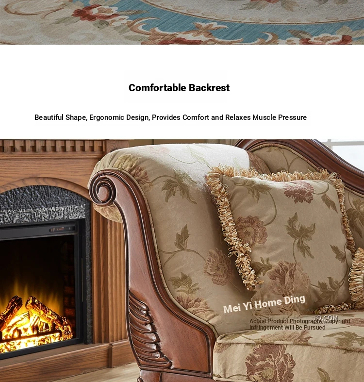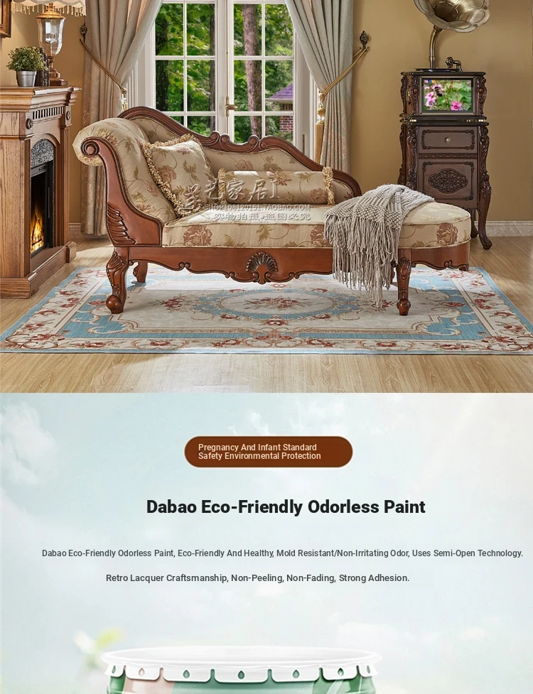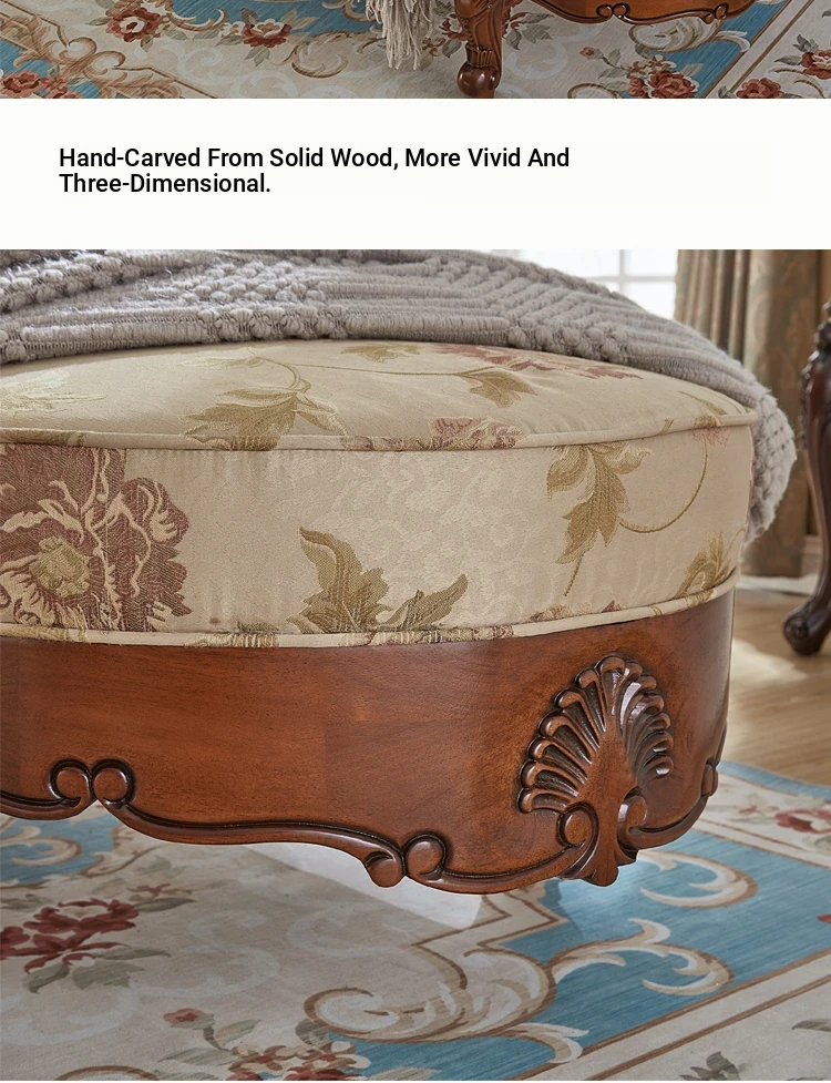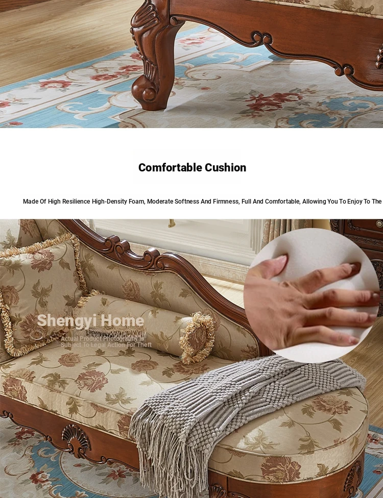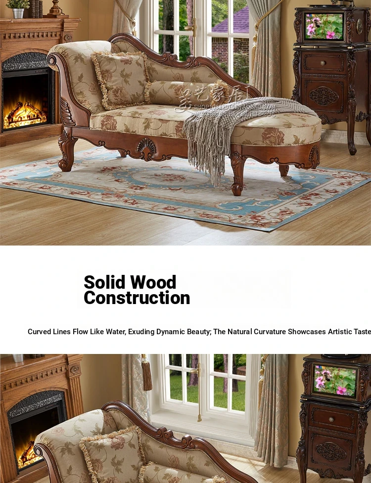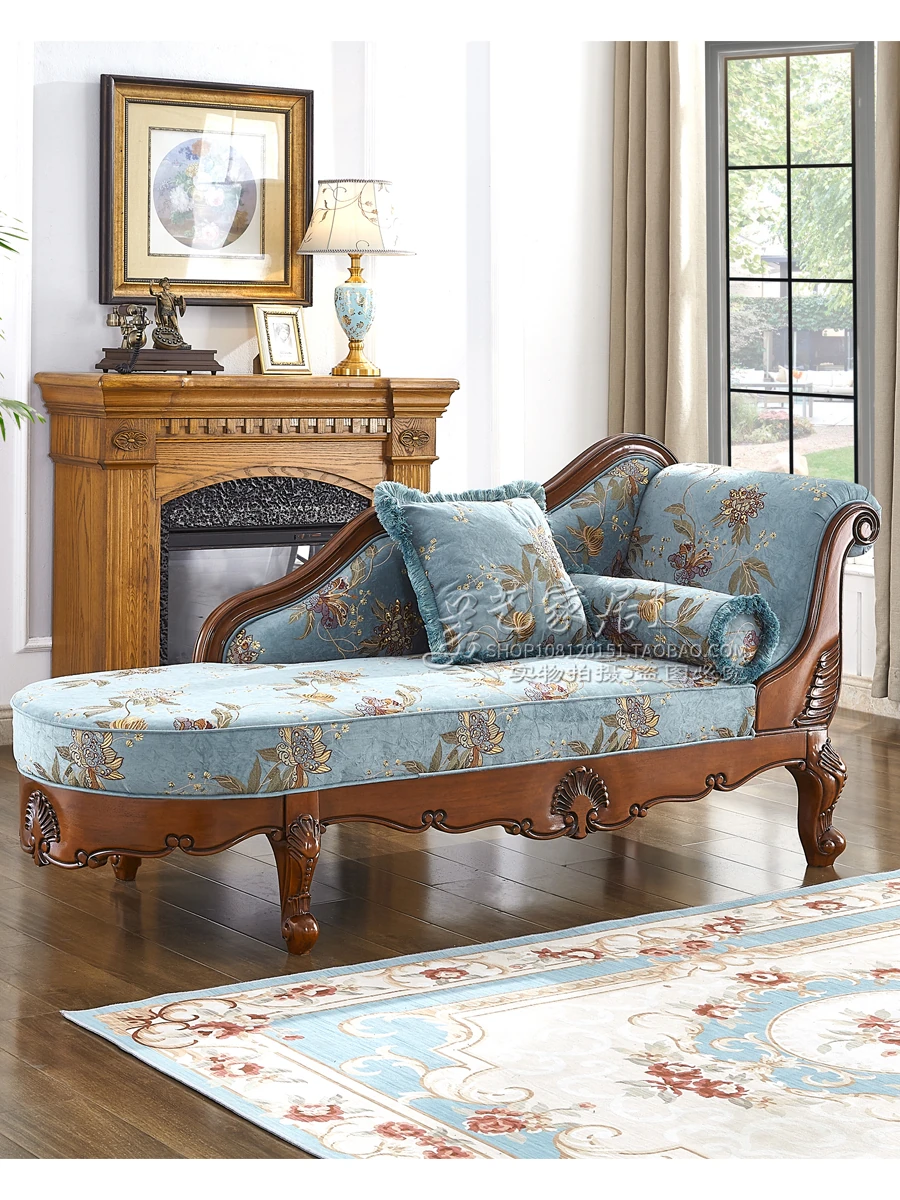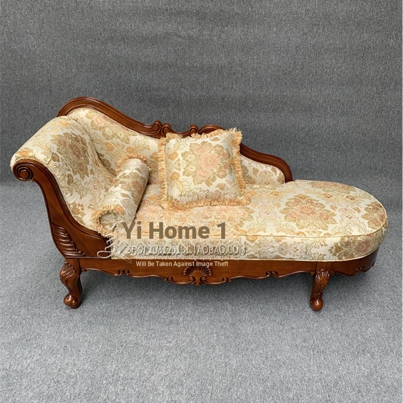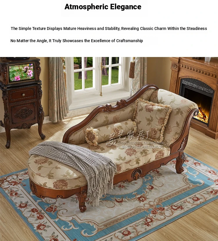 American Style Solid Wood Chaise Lounge - Elegant Fabric Recliner Chair for Living Room, European Lazy Sofa Bed for Bedroom, Perfect for Relaxation and Comfort.