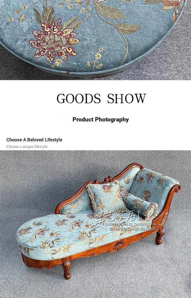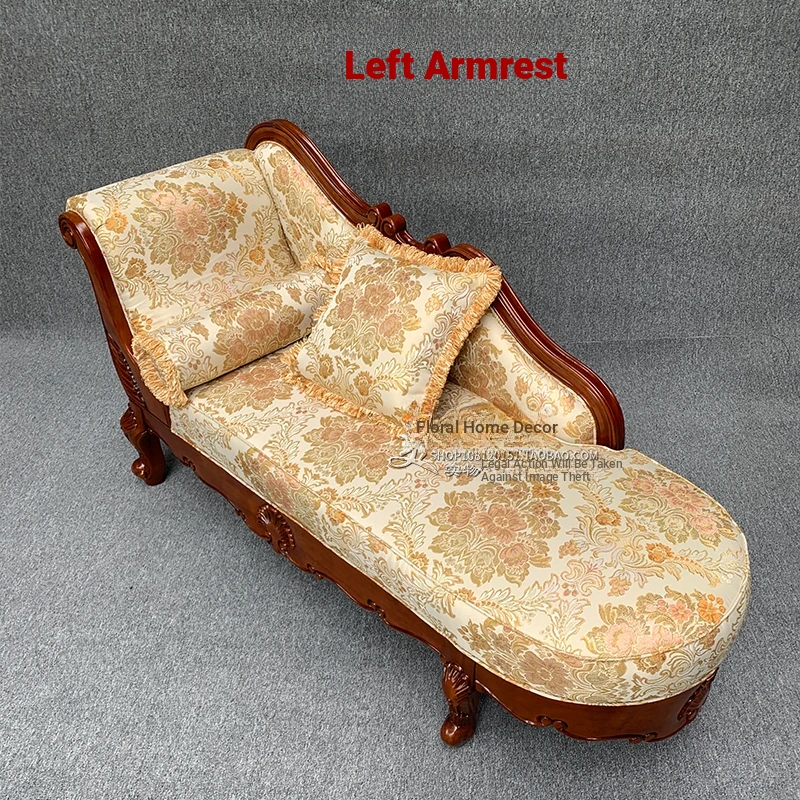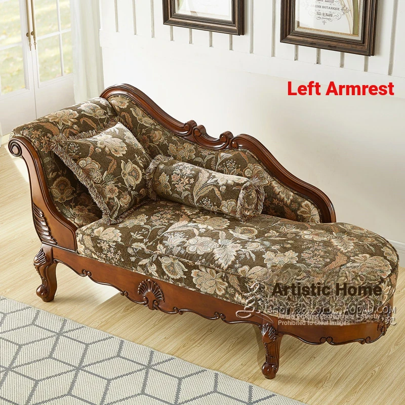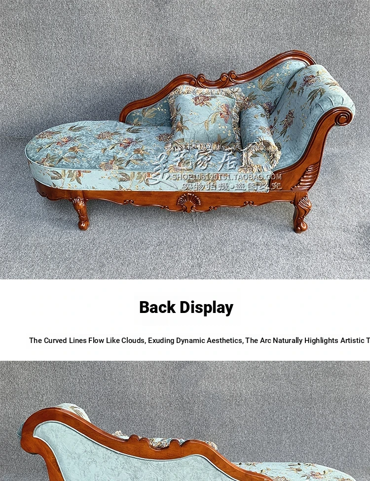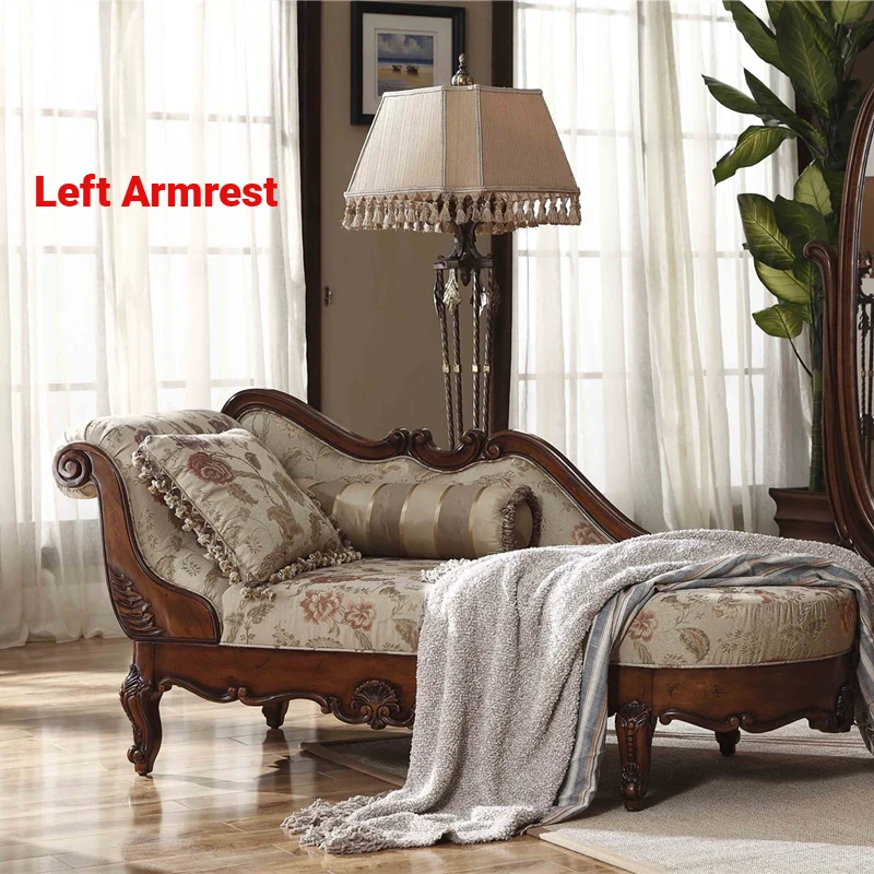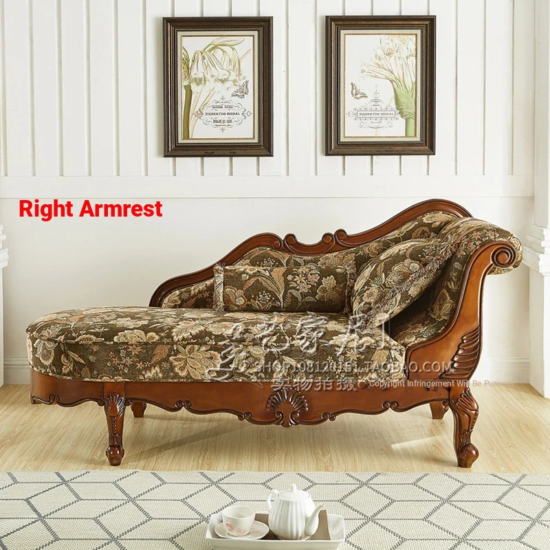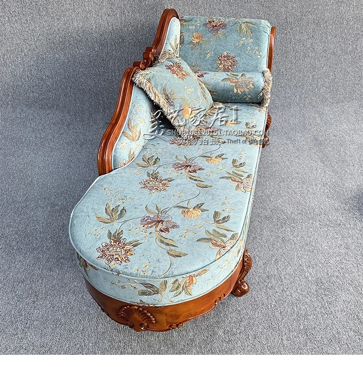 American-style Chaise Lounge - Solid Wood Bedroom Beauty Couch, Fabric Single Chaise Sofa for Living Room, European-style Chaise Chair