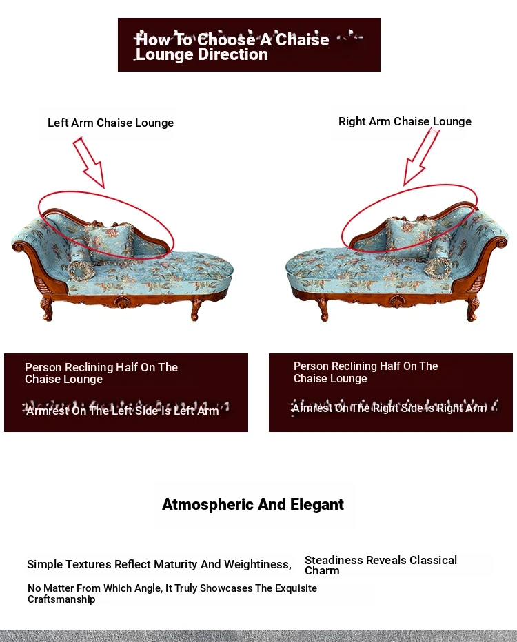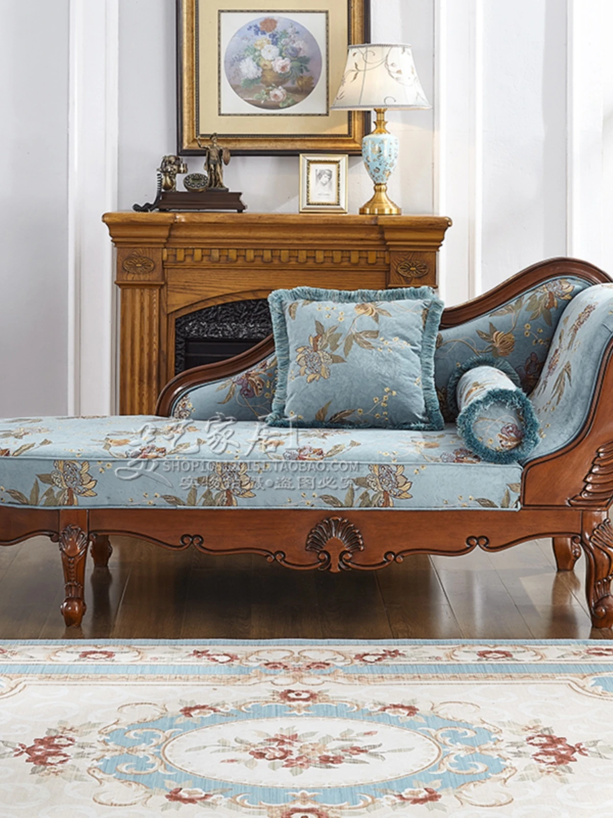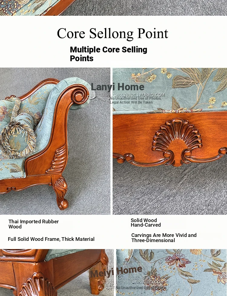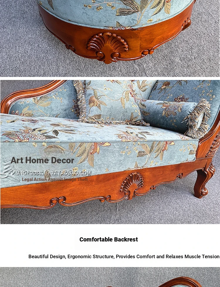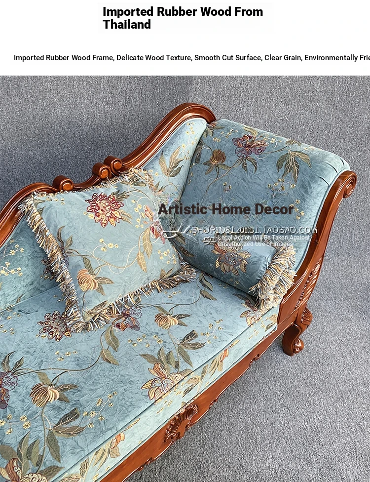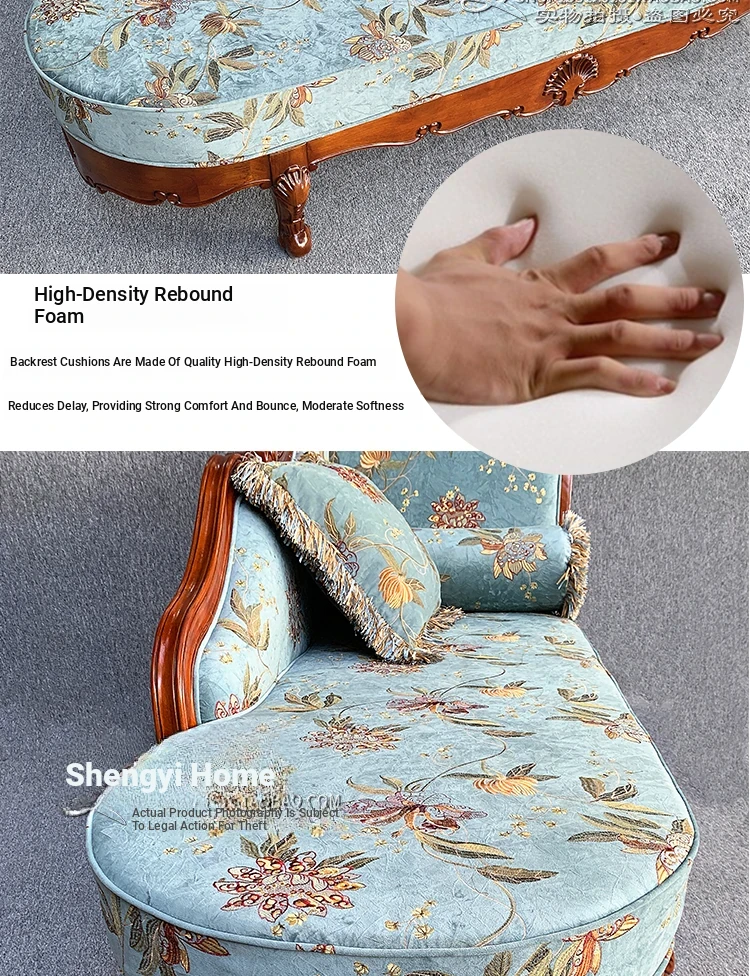 American-style Chaise Lounge - Solid Wood Bedroom Beauty Couch, Fabric Single Chaise Sofa for Living Room, European-style Chaise Chair
