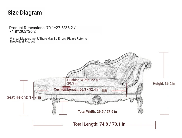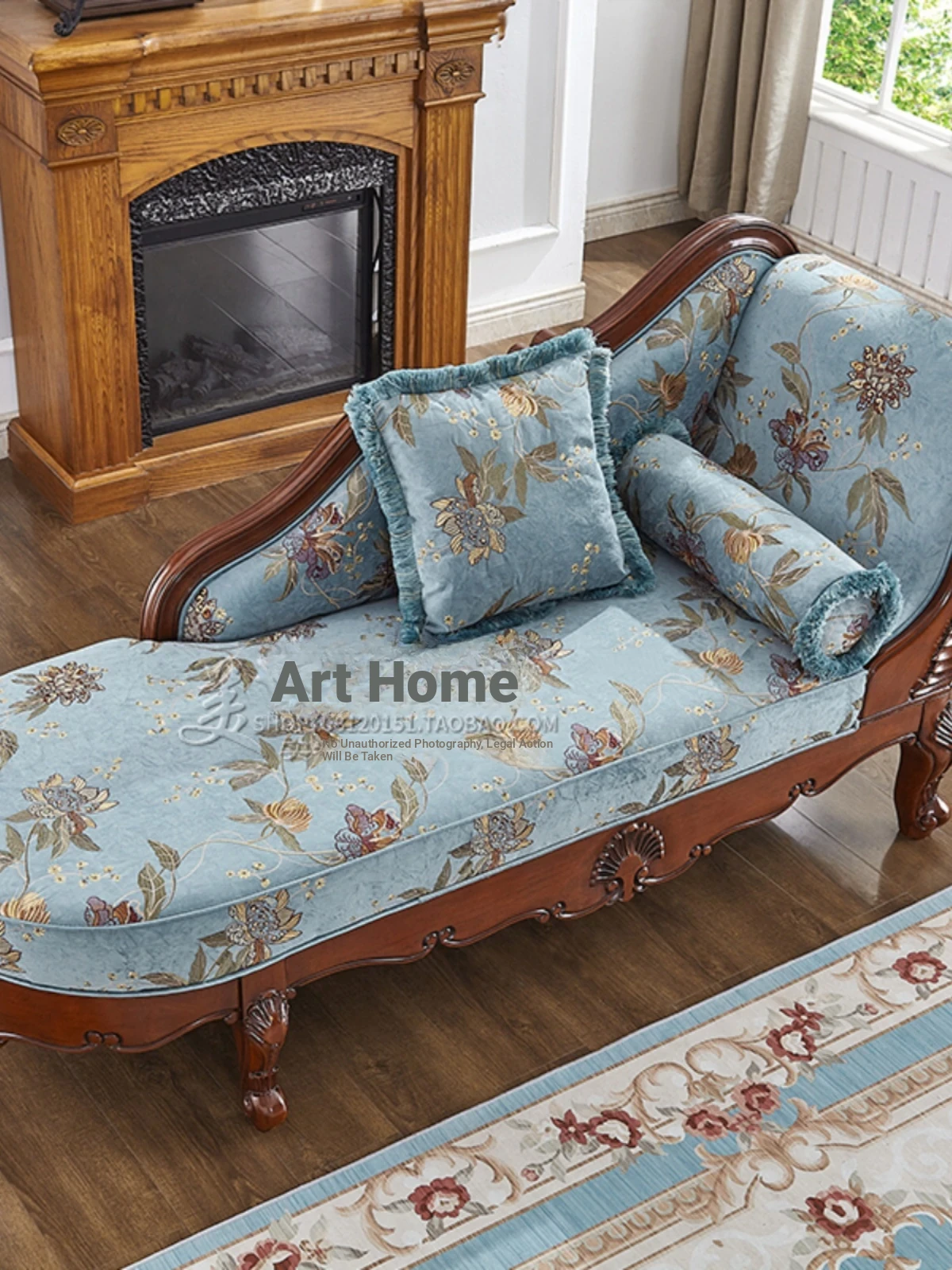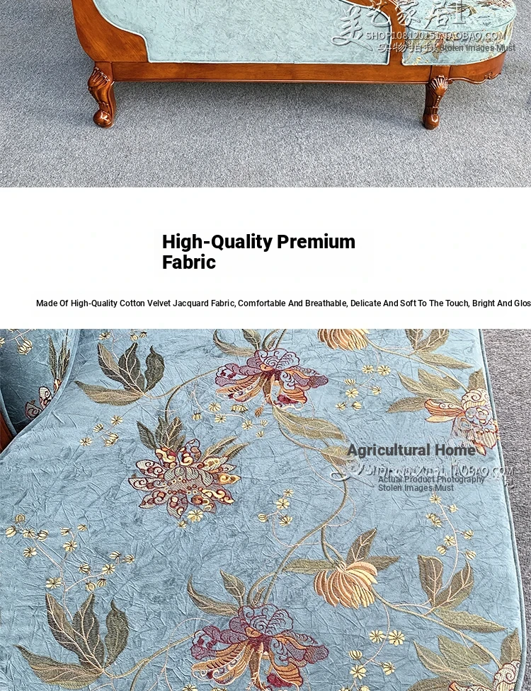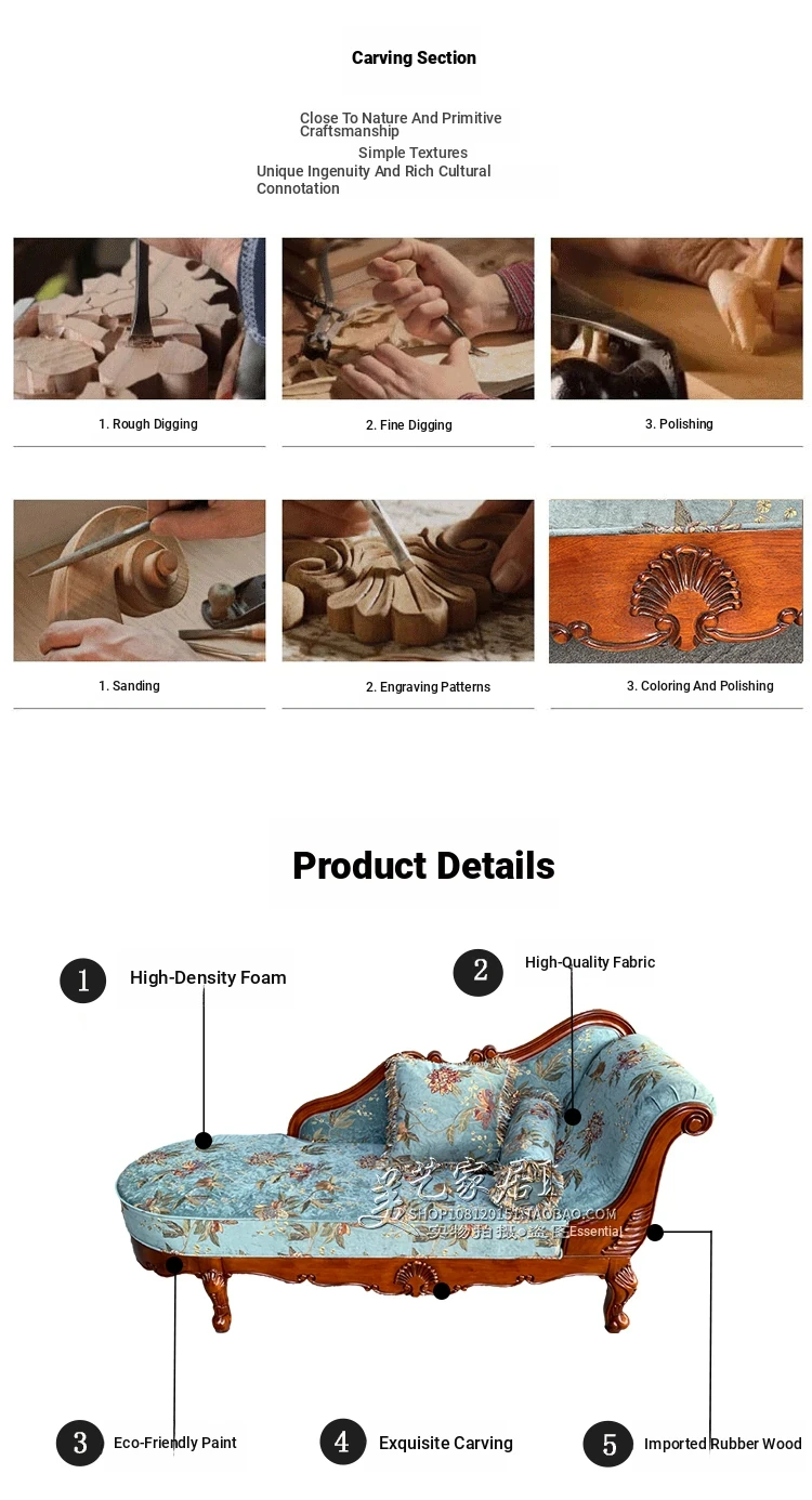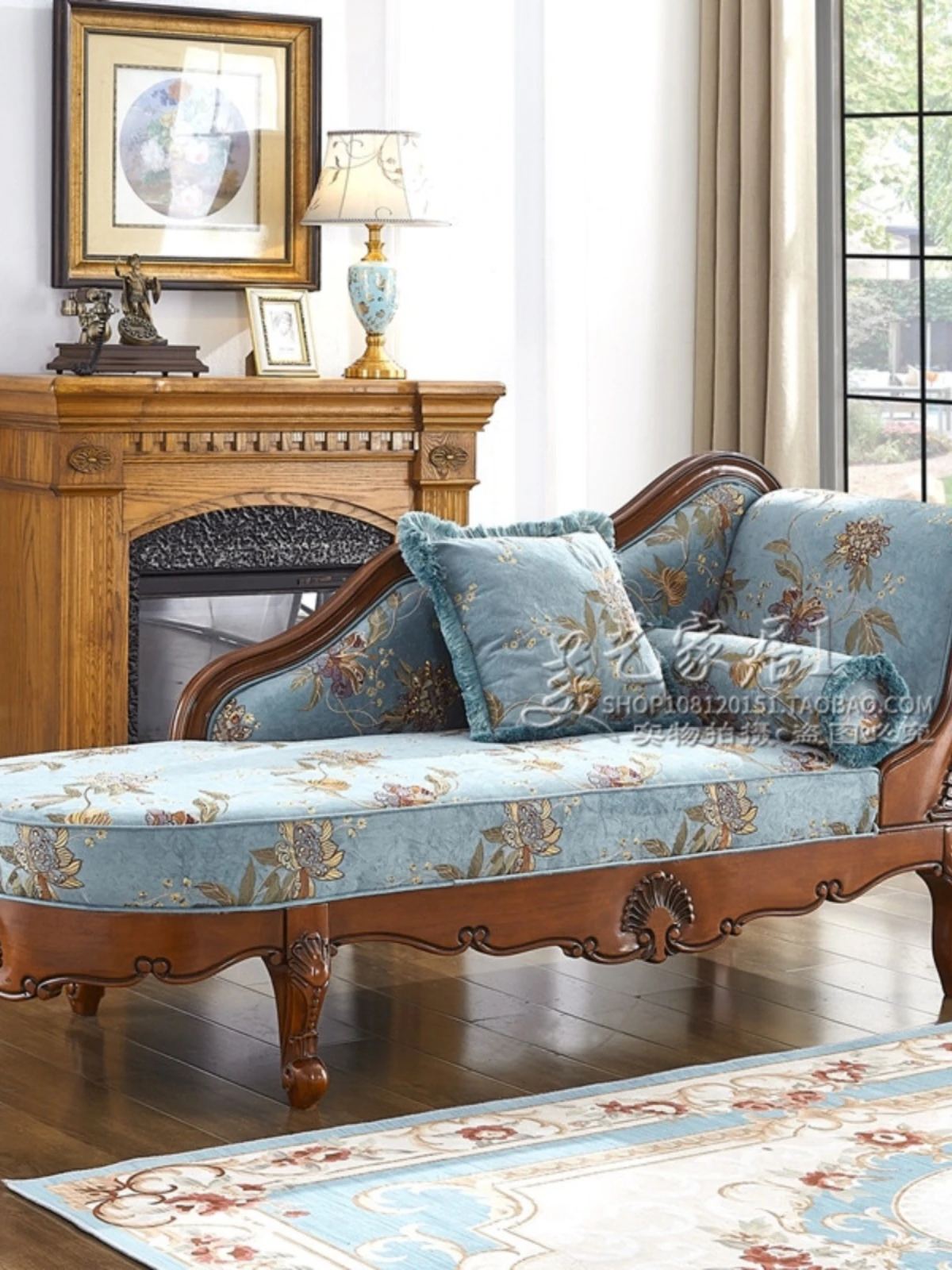 American-style Chaise Lounge - Solid Wood Bedroom Beauty Couch, Fabric Single Chaise Sofa for Living Room, European-style Chaise Chair
