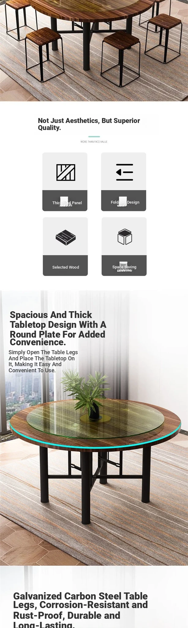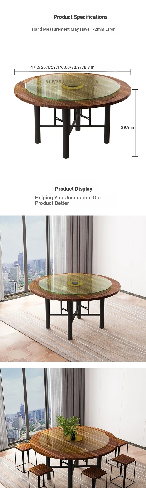 47.24 in desktop +31.50 in turntable + table legs