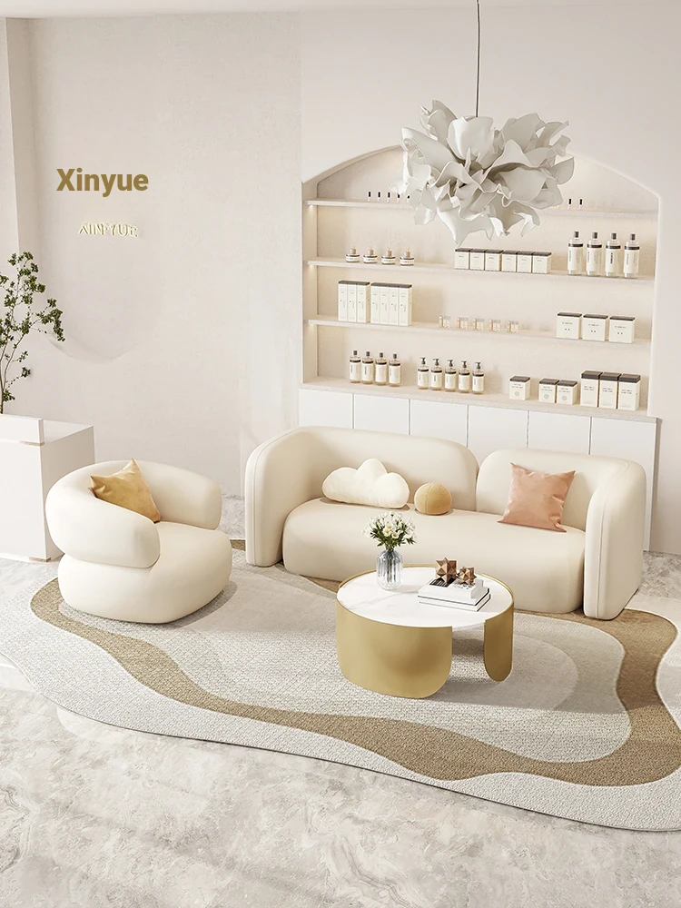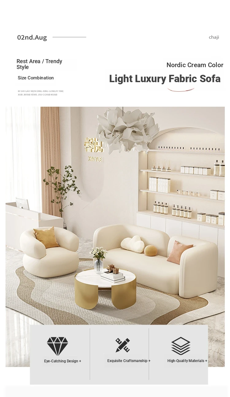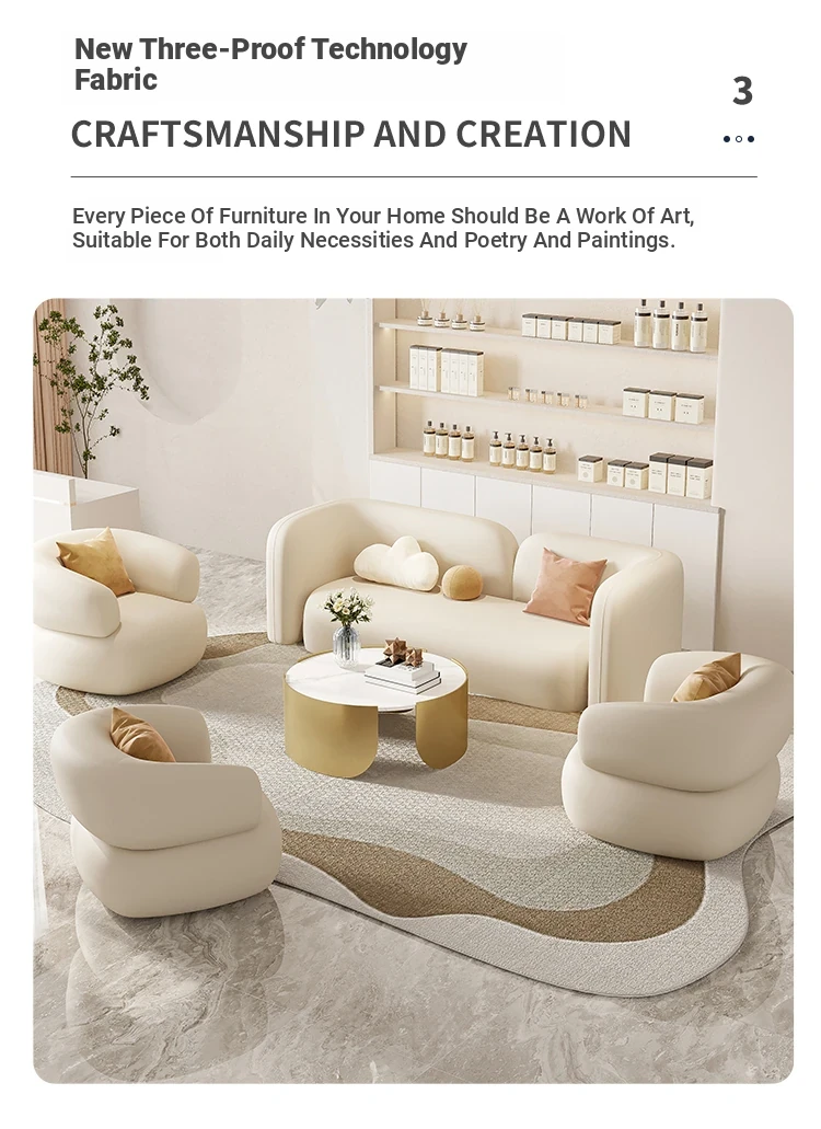Creamy Tech Fabric Sofa for Small Spaces - Trendy Minimalist Design for Living Rooms, Beauty Salons, and Clothing Stores - Perfect Compact Couch for Cozy Reception Areas