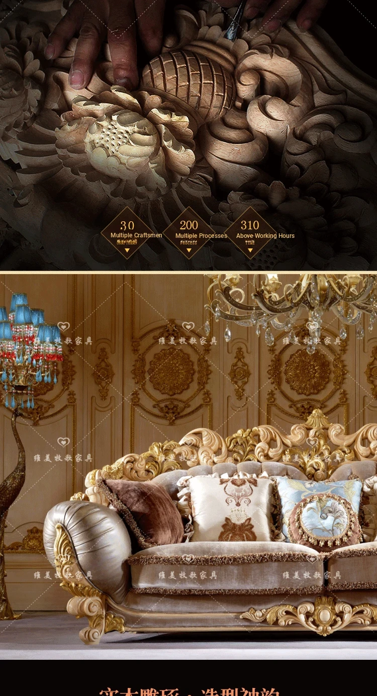 Elegant European Style Fabric Sofa - Solid Wood Construction, Available in Single, Double, and Triple Seat Options for Versatile Living Room Combinations - New Arrival!