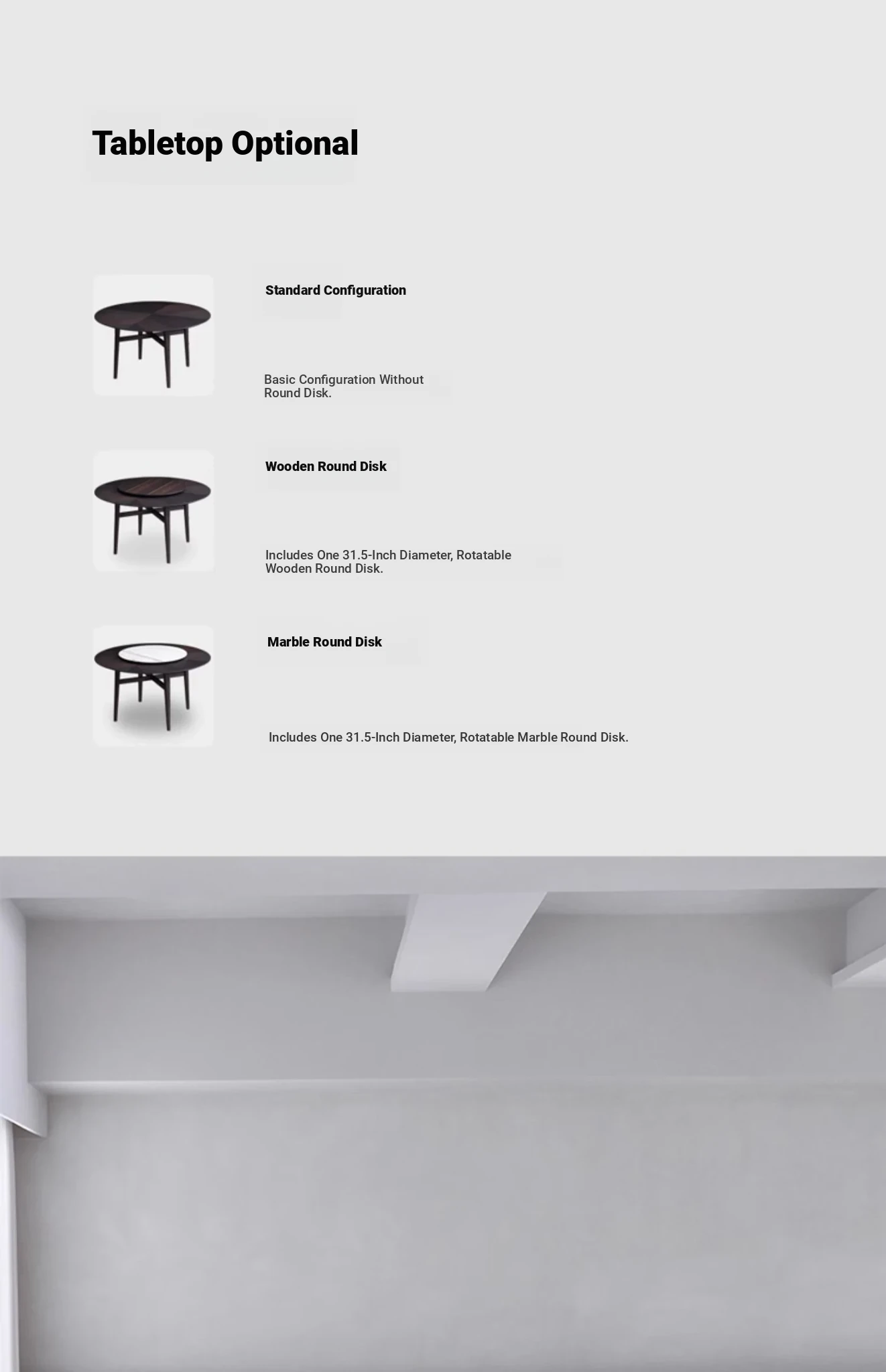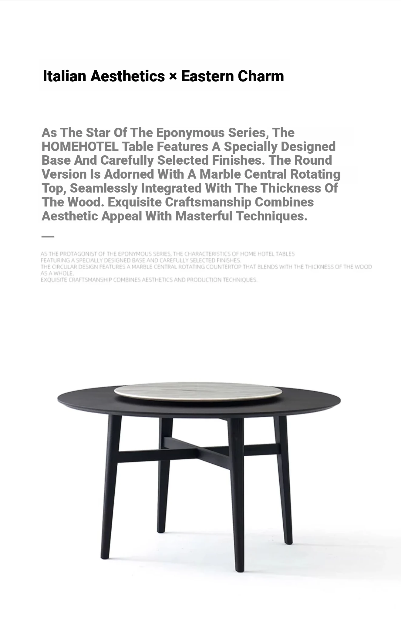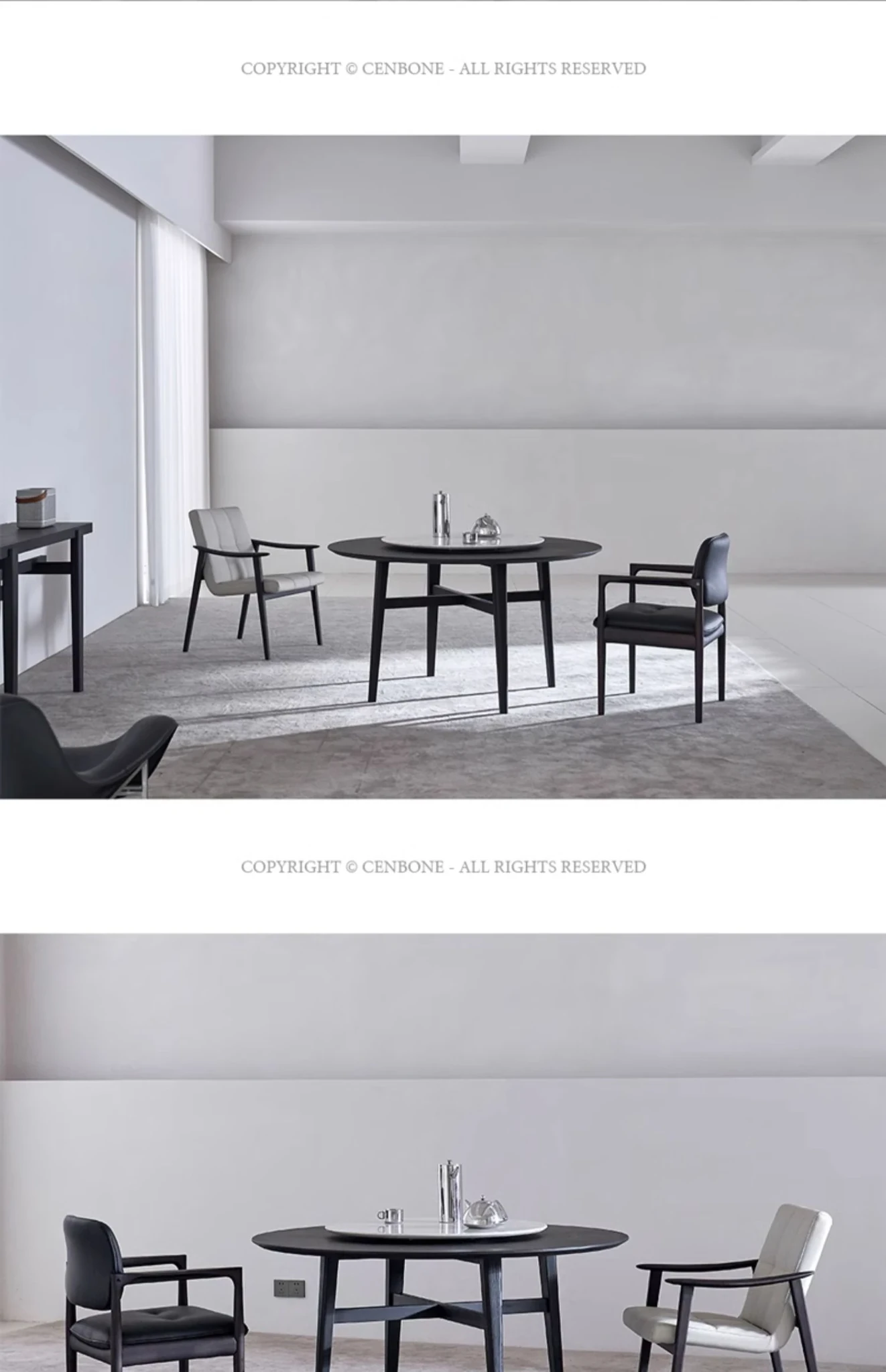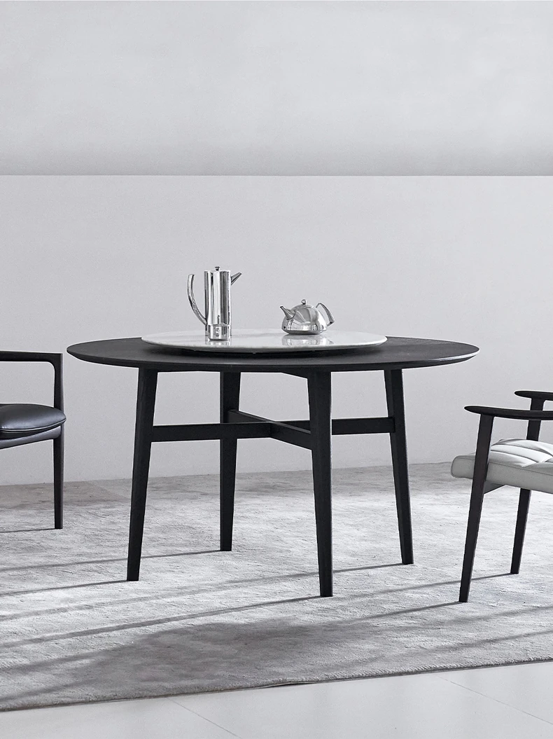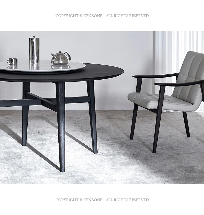 Elegant Italian Minimalist Round Dining Table with Smoky Finish and Turntable, Solid Wood Legs, 1.35m Diameter - CT-350