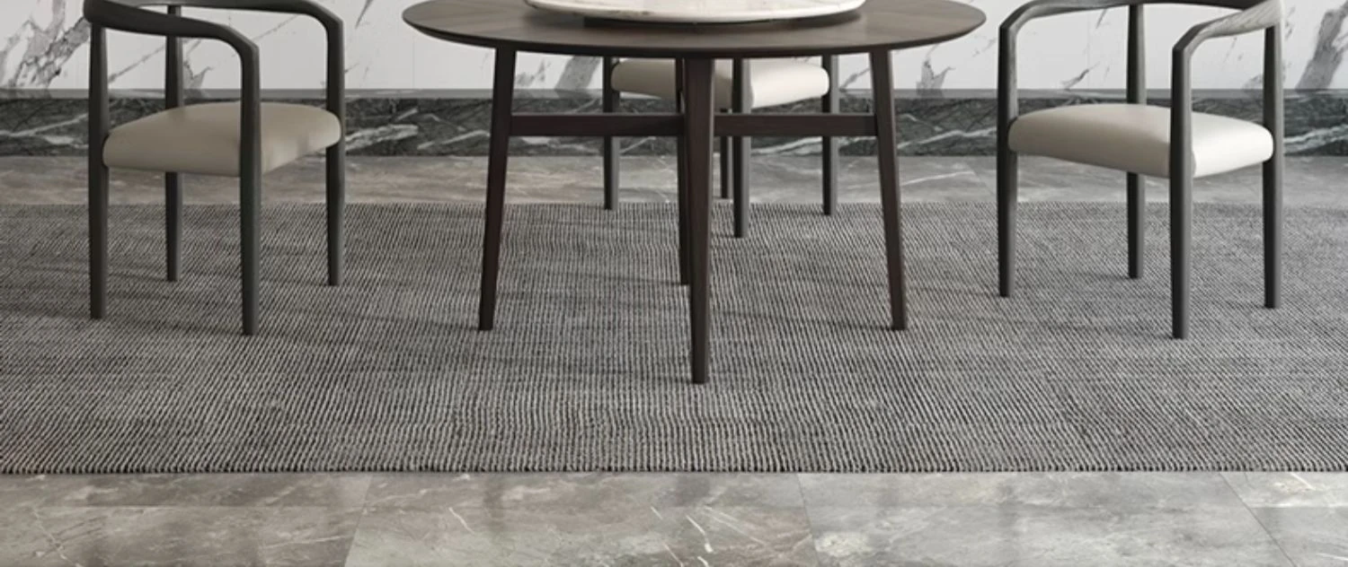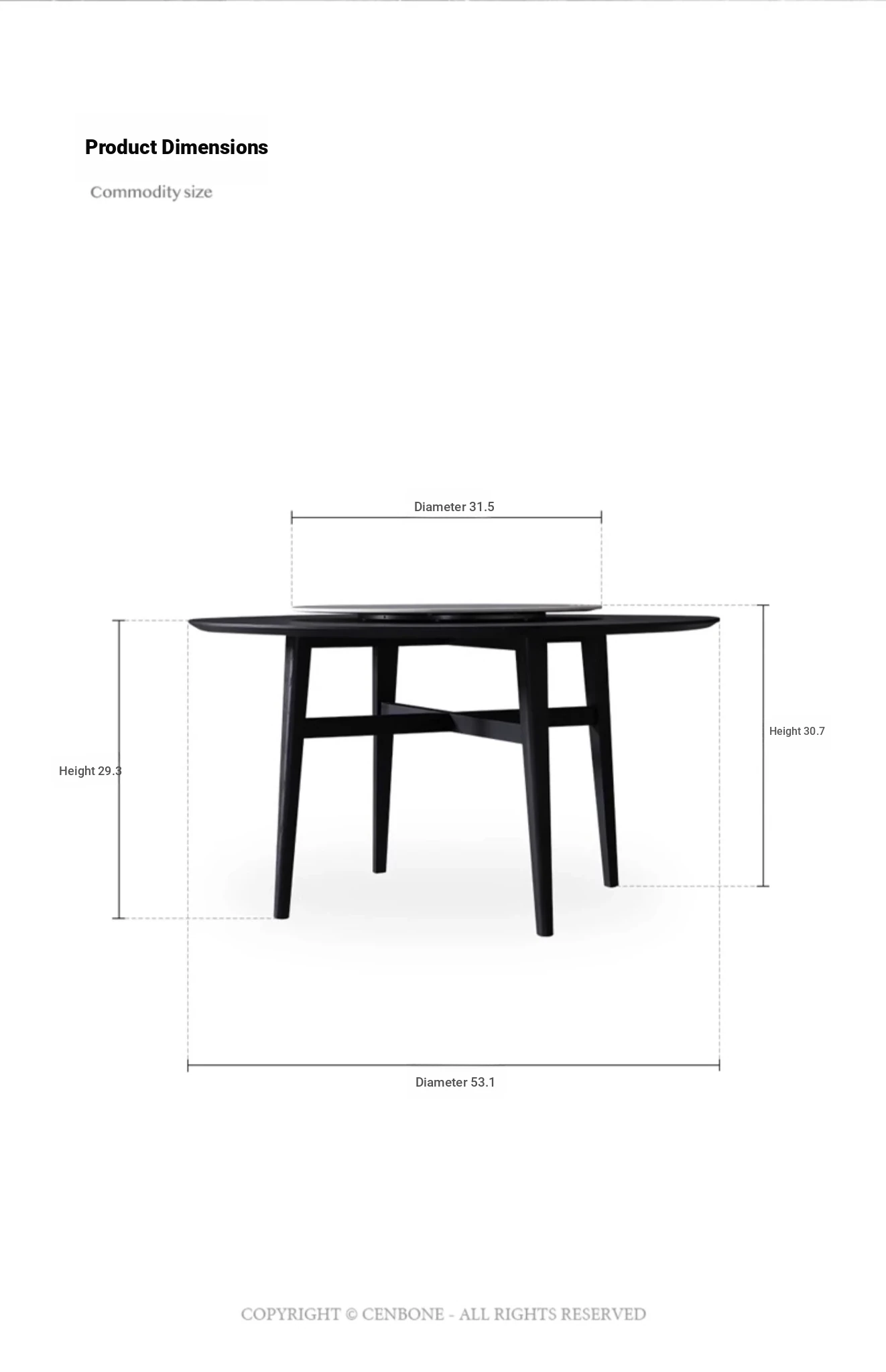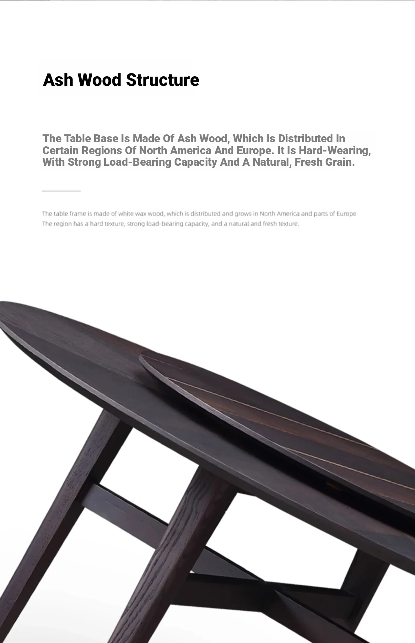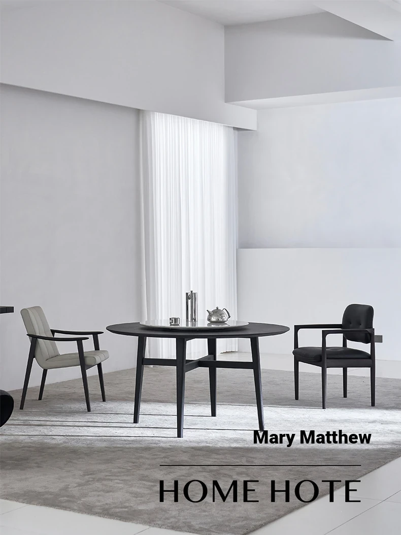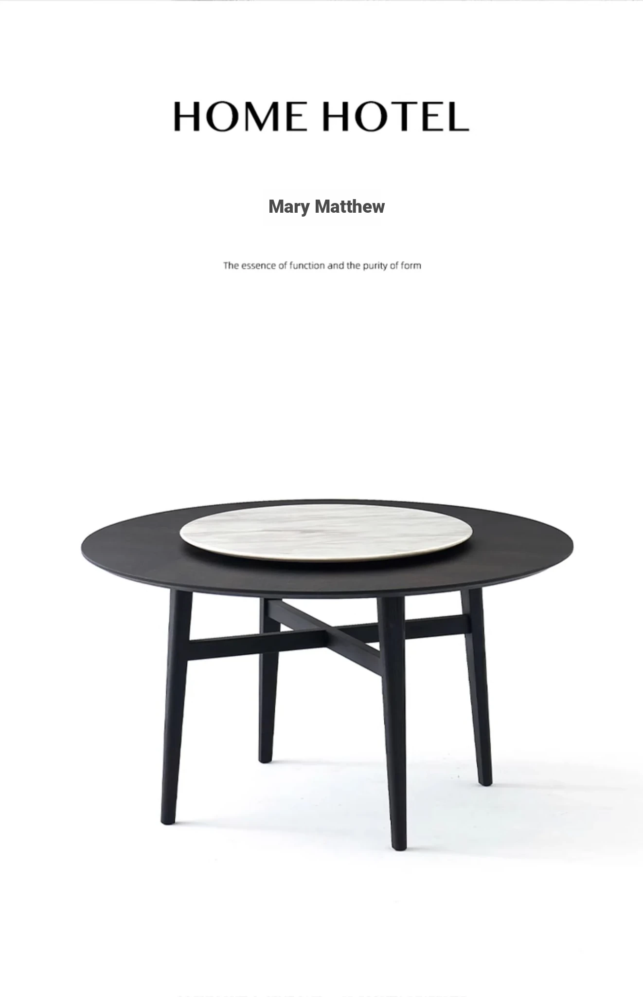 Elegant Italian Minimalist Round Dining Table with Smoky Finish and Turntable, Solid Wood Legs, 1.35m Diameter - CT-350